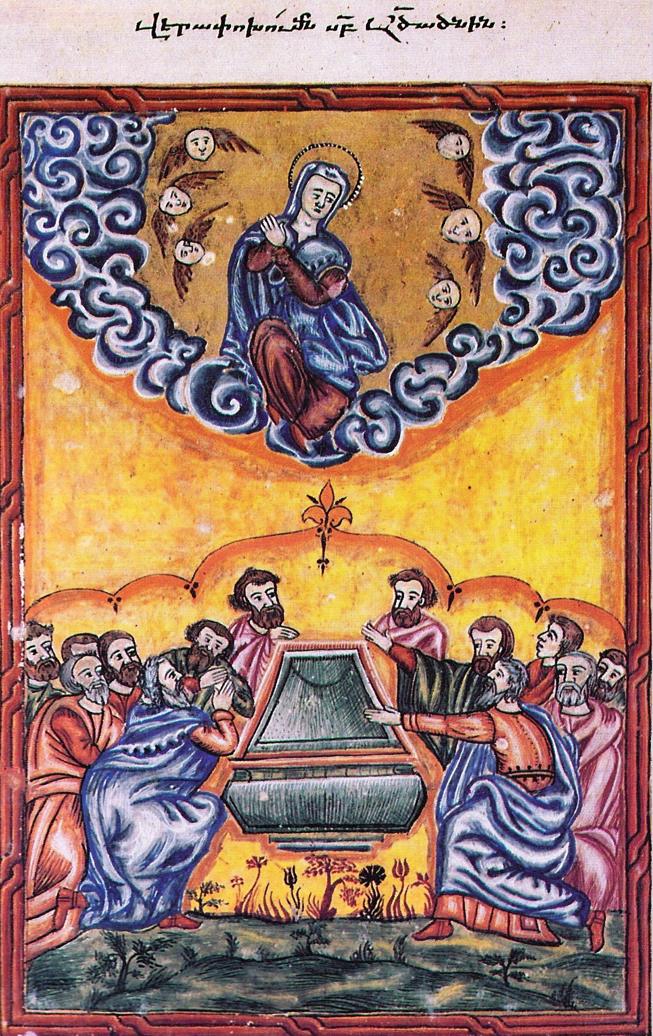 The Armenian word used for the Assumption, “Verapokhoum,” appears to mean, in modern Armenian, “change again.” However, in classical Armenian, it means “transport up.”