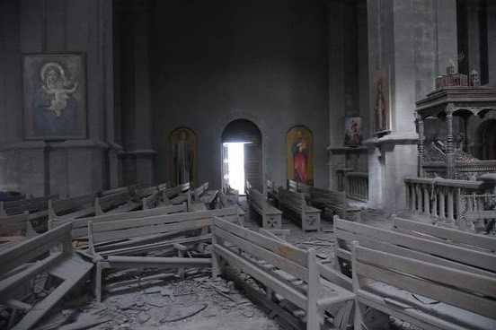 The Holy Savior Armenian Cathedral of Shushi has been damaged more than once in the course of the past century. Again and again, Azerbaijanis have targeted this place of worship. The latest shelling follows the incessant strikes of civilian-populated areas, including schools and kindergartens, by Azerbaijani forces seeking to drive out the local Armenian population from their homeland.