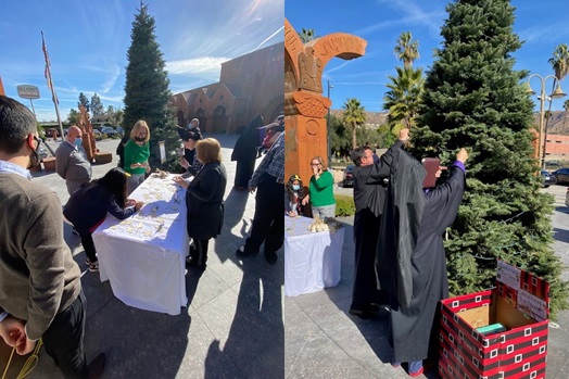 Please take a wooden angel and a sharpie, write either a message or a name, and place it on our tree.