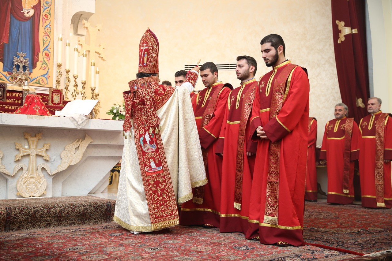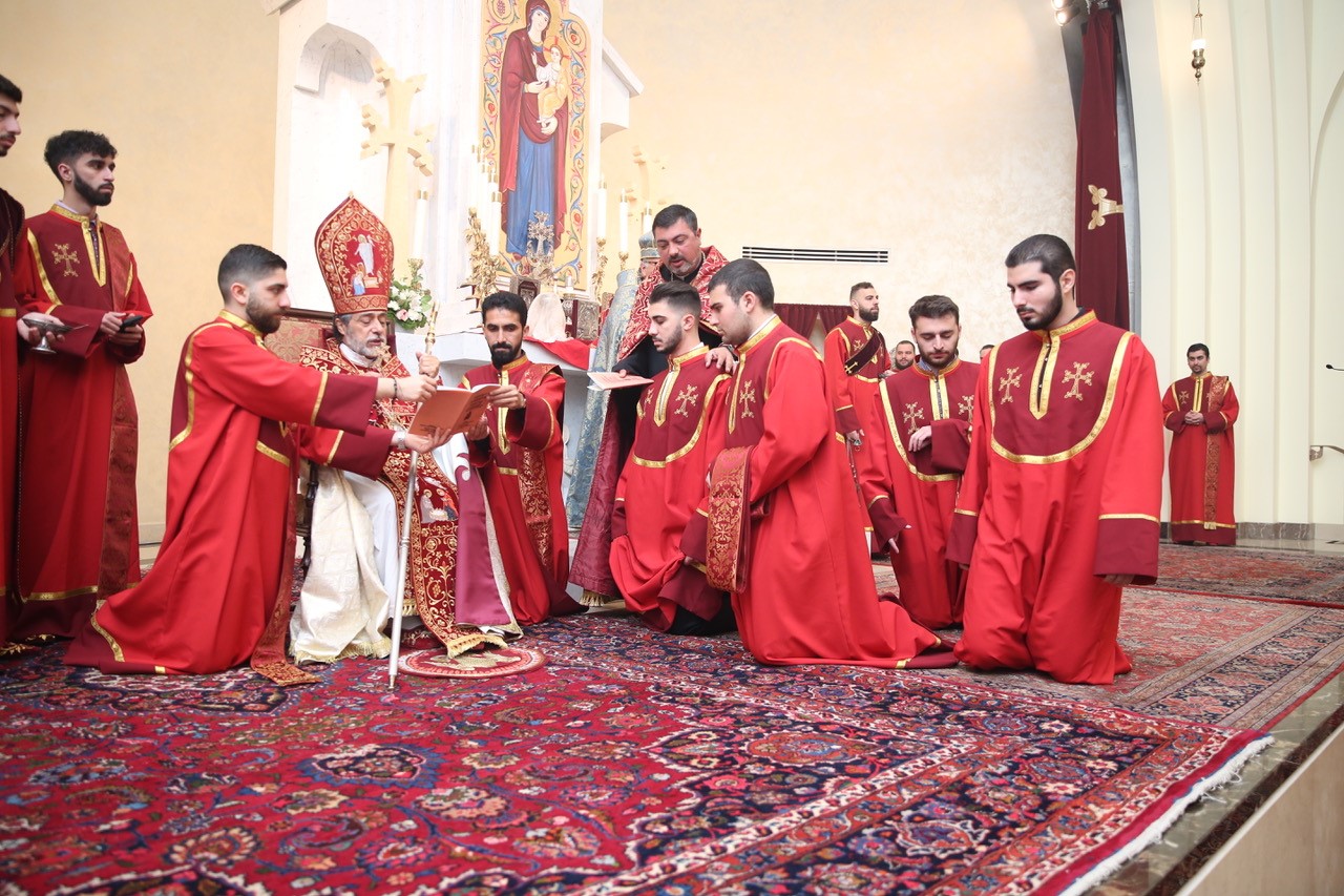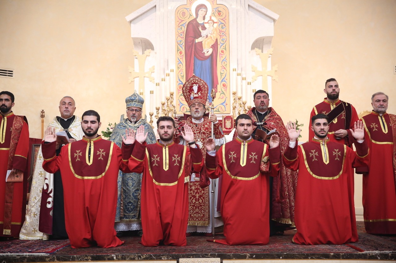During the service, assisted by the Rev. Fr. Khajag Shahbazyan and Archpriest Fr. Manoug Markarian, the Primate ordained altar servers Arshak Ter-Hovhannisyan, Ohan Kilislian, Aron Petrosian, and Aram Dakessian into the Diaconate. Archbishop congratulated the newly-ordained deacons, extending his blessings and conveying to them his wholehearted wishes in their renewed commitment to serve our Lord and Savior Jesus Christ and to uphold the sacred traditions of the Armenian Apostolic Church.