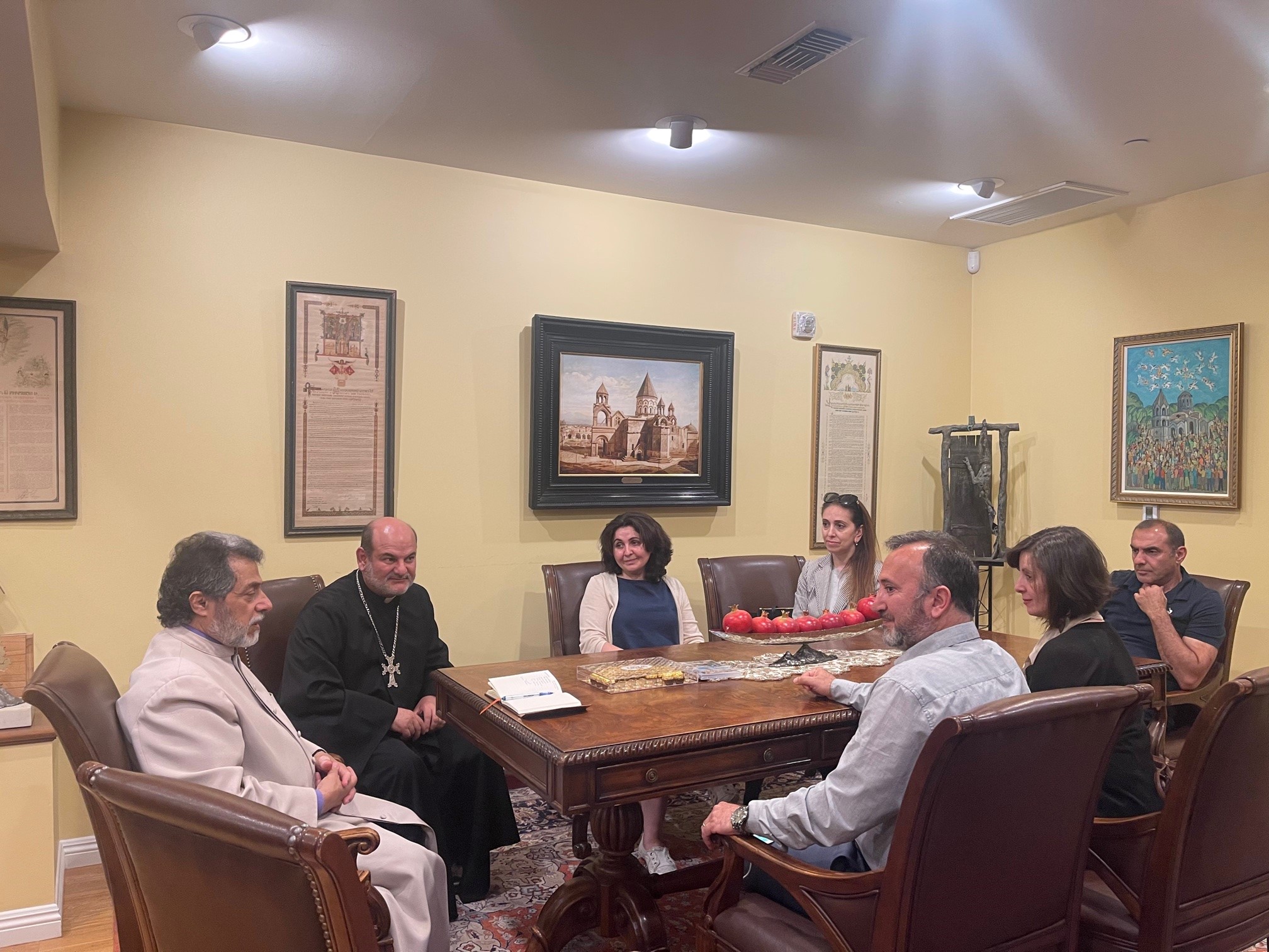 On May 25th, Abp. Hovnan Derderian, Primate of the Western Diocese, met with the board members of the Learning Mission who were accompanied by the Rev. Fr. Gomidas Zohrabian, Pastor of St. Gregory the illuminator Armenian Church of Fowler, who introduced Ruben Gargaloyan, the founder and president of the organization to the Diocesan Primate.