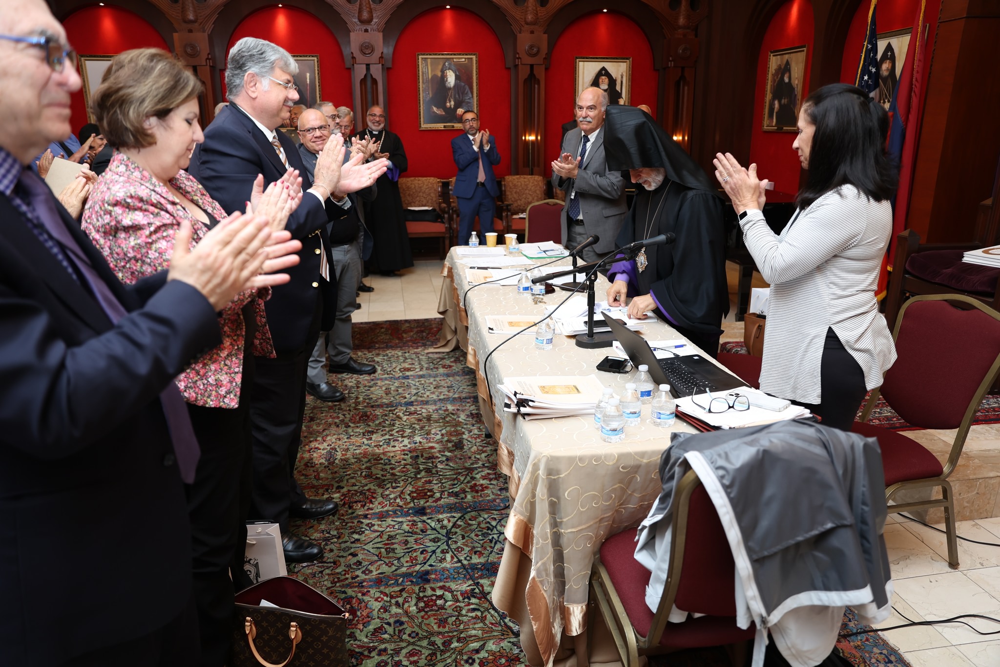 The representatives observed a moment of silence in memory of the late former Western Primate Archbishop Vache Hovsepian, who passed away nearly five months ago as they remembered his valuable contributions to the Western Diocese. A prayer for the repose of the souls of Antranik Zorayan, Greg Tcherkoyan, Lily Balian, Nazaret Kevonian, Dr. Vahram Biricik, Clara Margossian and Arpi Barsam was also offered.
