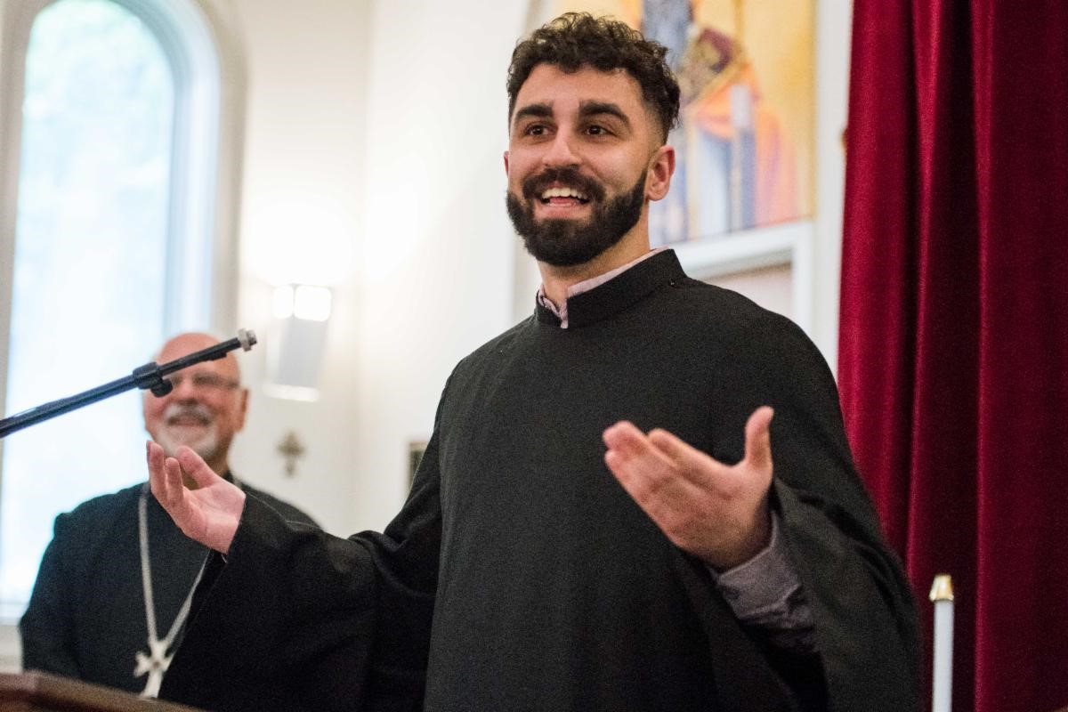 Dr. Ionut-Alexandru Tudorie, Academic Dean at St. Vladimir’s Orthodox Theological Seminary, spoke to the graduate, conveying his love and congratulations for completing his education over the past four years. “I am happy to share this special moment with you.”
