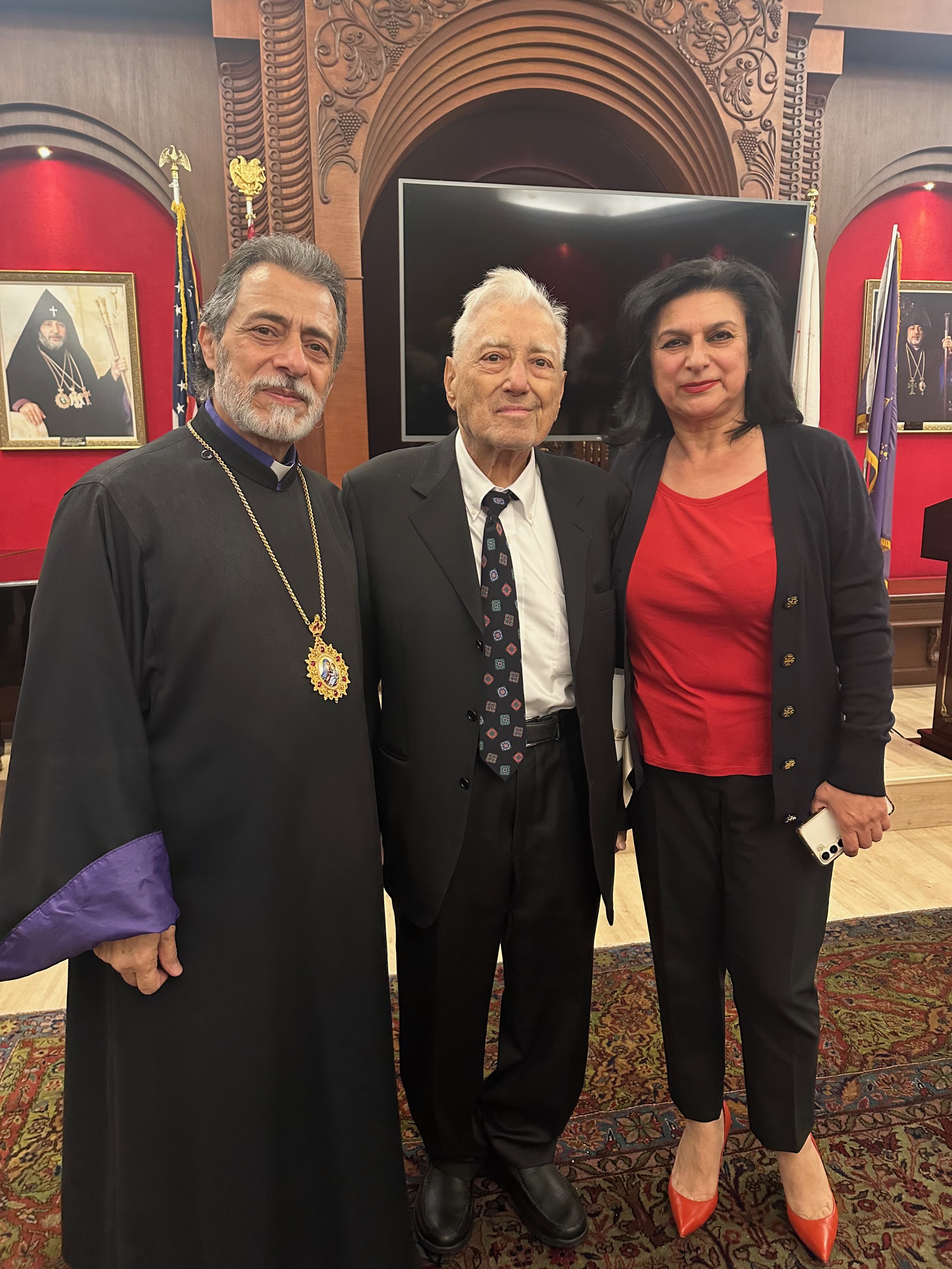 In the 1960s, when I was in elementary school in Hollywood, there were a handful of Armenians in the public school. By the time I got Marshall High School in Los Feliz, the number of Armenians was up, but not many. Osheen was a resource of Armenian knowledge for us. I had the good fortune of working with Osheen at the Armenian Observer while I went to college. I’d like to thank our Primate Archbishop Hovnan for giving me this opportunity to present Osheen Keshishian to the congregation. Today I have an opportunity to express my thanks and appreciation to a man who taught us so much, who became the second wing to push us to new heights. It was people like Osheen that kept the Armenian spirit alive. His activism in our community will always be honored.