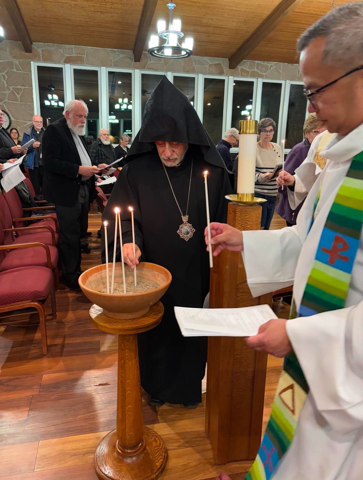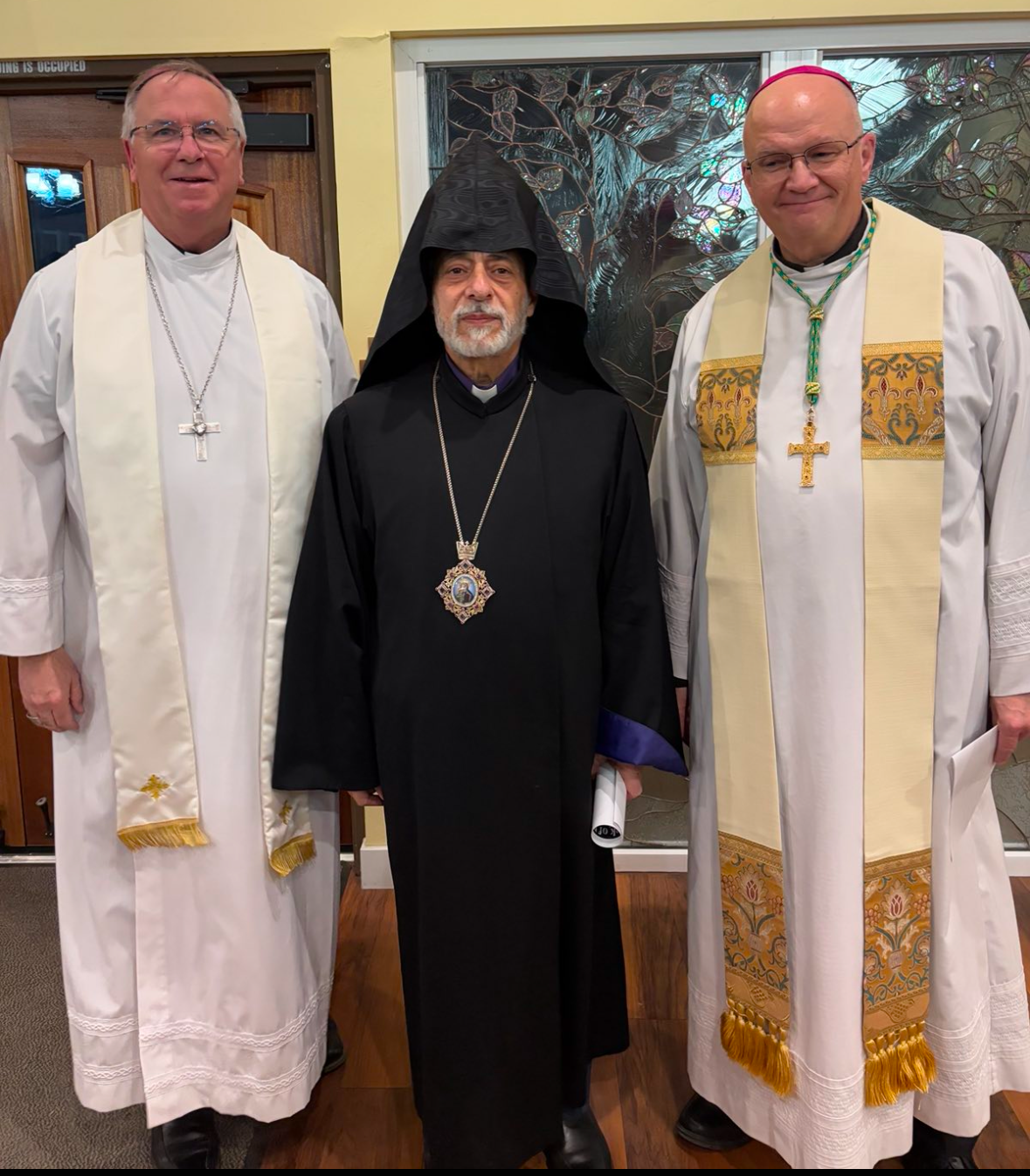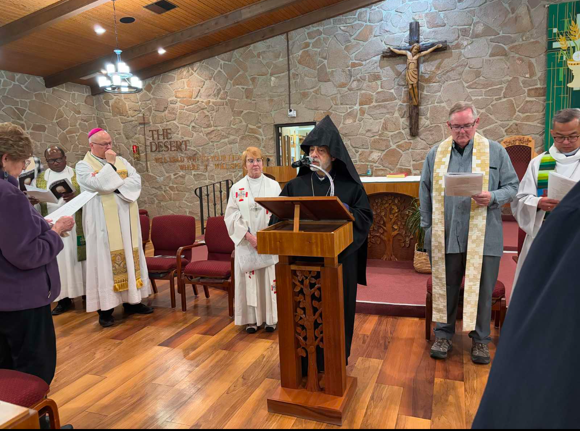 At the invitation of the Most Reverend John P. Dolan, Bishop of the Roman Catholic Diocese of Tucson, on January 23, 2025, the Diocesan Primate Archbishop Hovnan Derderian, accompanied by the Rev. Fr. Zacharia Saribekyan, Pastor of St. Apkar Armenian Church in Scottsdale, travelled to Tucson, Arizona to take part in an ecumenical prayer service, kicking off the Week of Prayer for Christian Unity. Themed “Do you believe” (John 11:26), the service was held in Our Lady of the Desert Church in Tuscon’s Redemptorist Renewal Center.