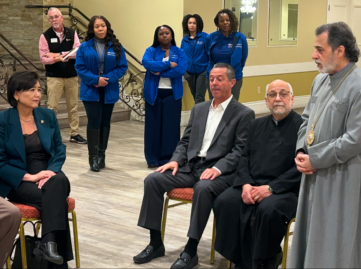 In addition to the Primate, the Honorable Congresswoman Judy Chu, representative of the district impacted by the fires, was also present. She greeted the Primate, parish priest Fr. Sarkis Petoyan, Parish Council Chairman Sarkis Nazerian and local residents who are enrolled in the program. Â