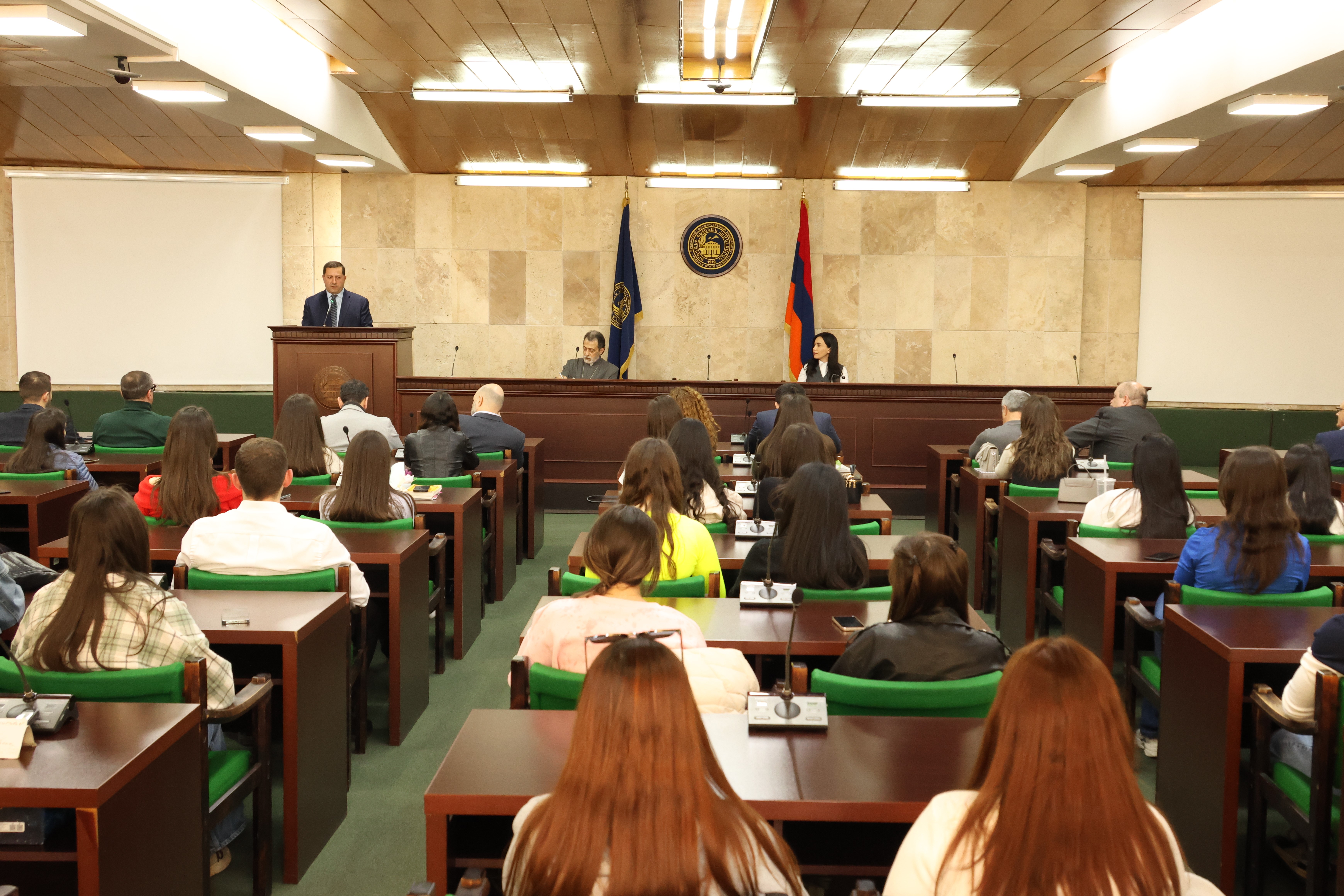 It should be noted that the solemn ceremony held in the YSU Academic Council meeting hall was attended by YSU vice-rectors, representatives of the administrative staff, lecturers, and students.