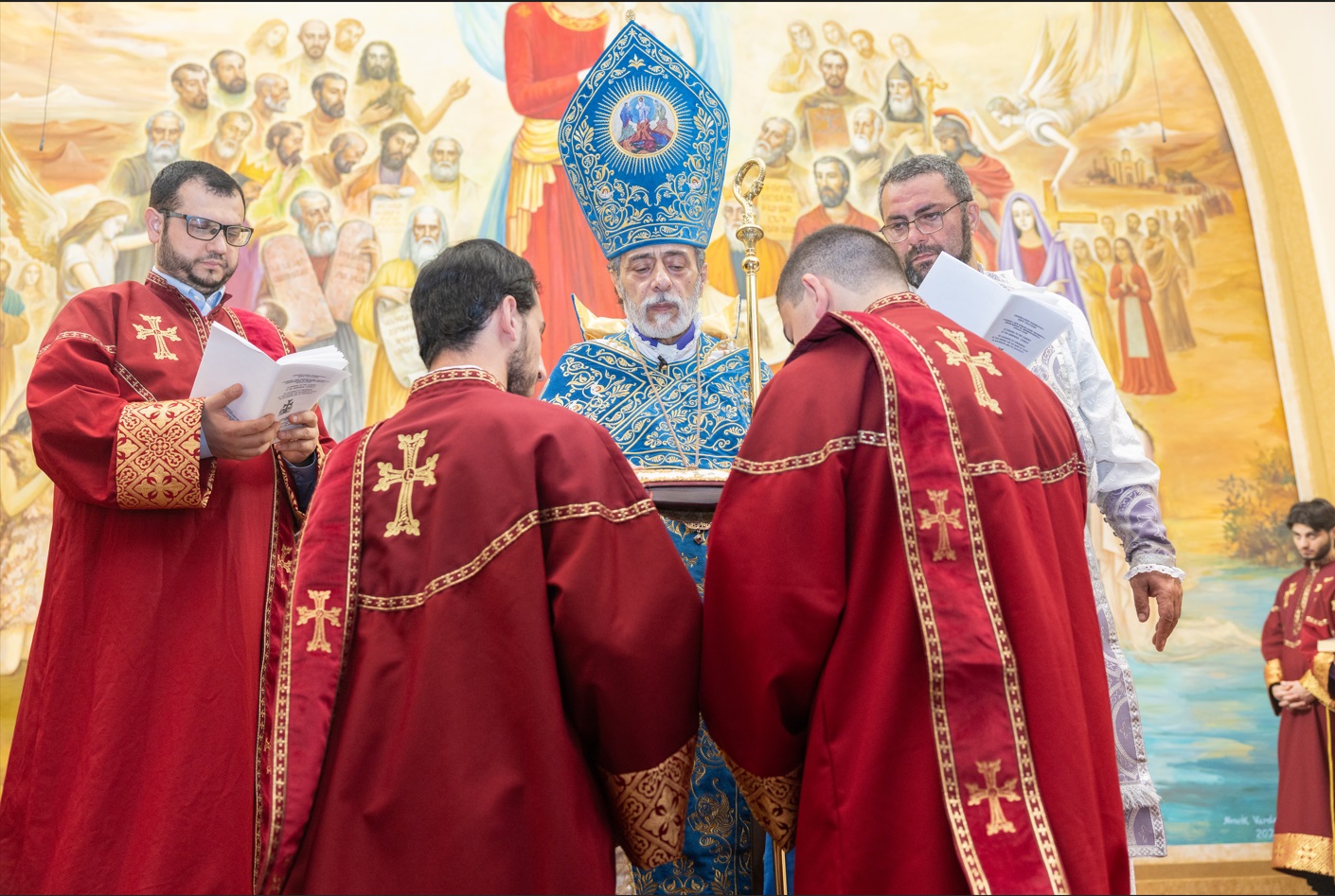 On Sunday, March 23, 2025, the Holy Apostles Armenian Church of Crescenta Valley witnessed a momentous and spiritually uplifting event as altar servers Mesrop Madoyan and Emin Matevosyan were ordained into the Diaconate. The day's celebrant and homilist was the Diocesan Primate His Eminence Archbishop Hovnan Derderian, who ordained the deacons in the presence of a congregation filled with faith and reverence. The ordination marked a significant milestone in the lives of the newly ordained deacons and in the continued spiritual growth of the parish community.