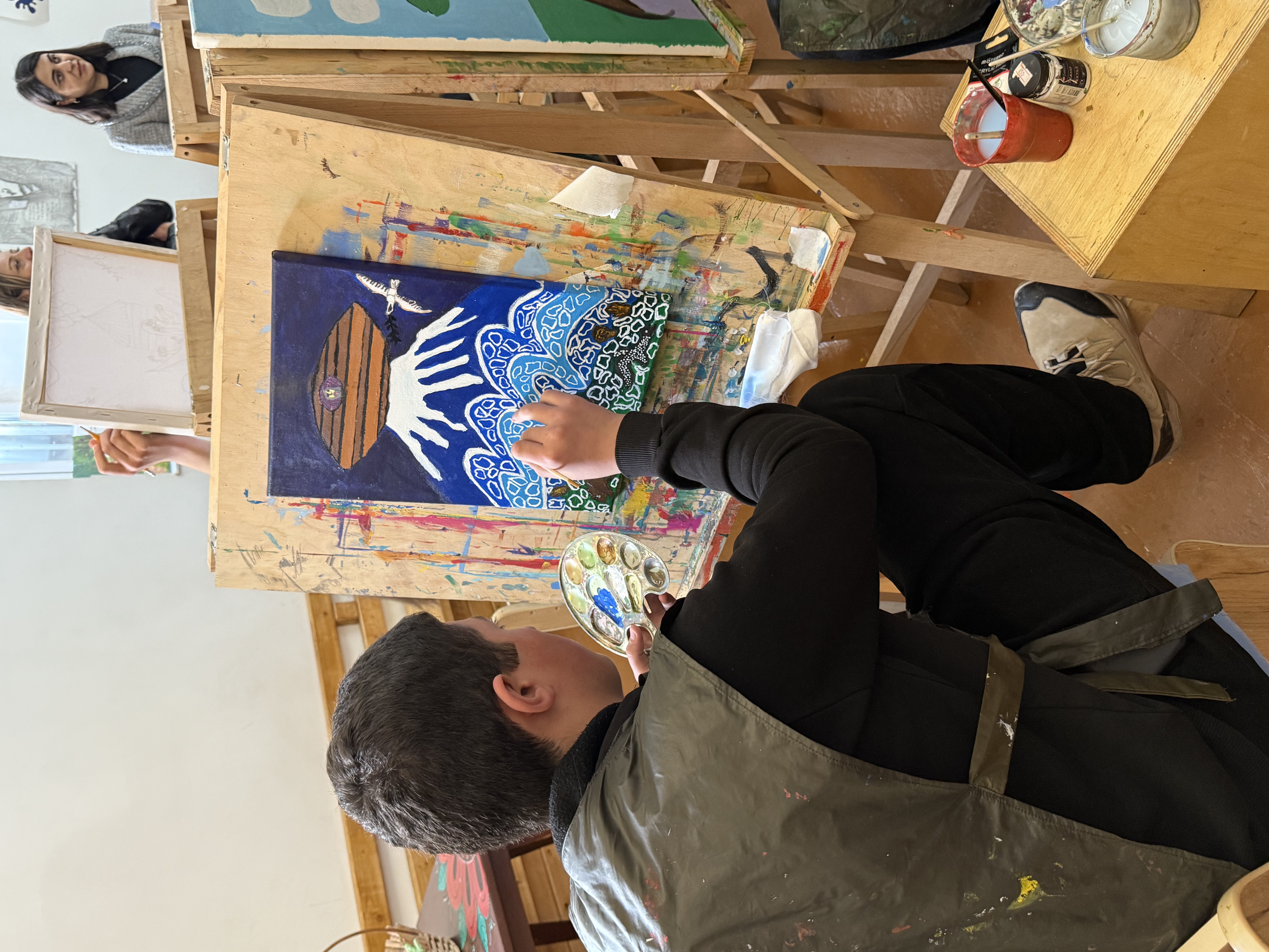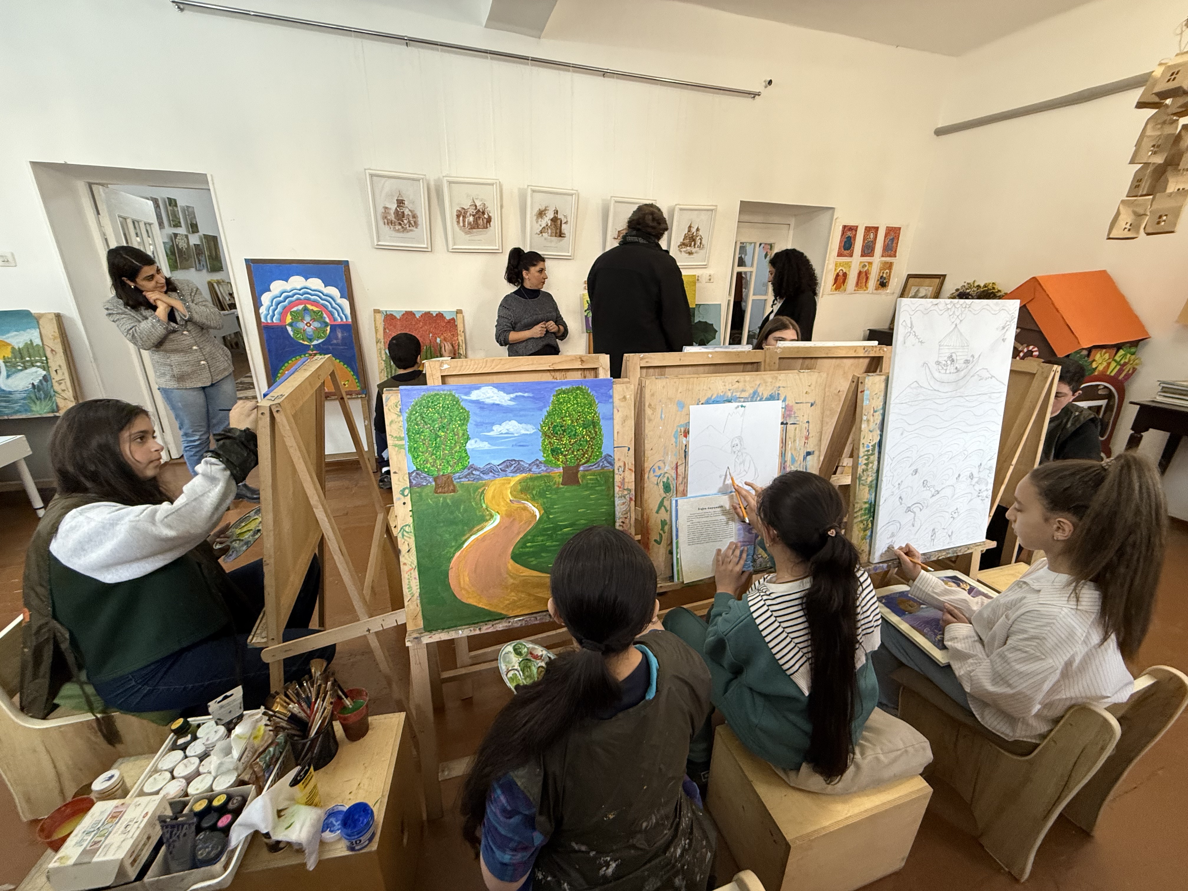 The Church also maintains a children's art center. Our visit there was truly a beautiful experience as we watched the after-school class of children paint, weave and create without inhibition. Our team member Gregory Beylerian who is creative director at Epostle shared thoughts on the drawings and designs by the young people. There we also had a chance to talk with the youth in an open-conversation about issues of faith and adolescence.