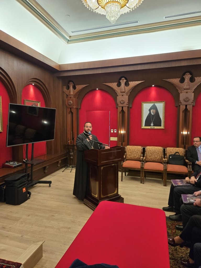 During the program, Rev. Fr. Nzhdeh Keshishyan, Pastor, Armenian Church of North Hollywood, represented Archbishop Hovnan Derderian, Primate of the Western Diocese of the Armenian Church of North America. In his remarks, Fr. Keshishyan praised Prof. Barlow Der Mugrdechian for his informative presentation, and commended the TCA Metro Los Angeles Chapter for organizing the kinetson. Fr. Njteh directed his concluding remarks at Honorary Consul Zimmerli by expressing his gratitude to the Swiss people for their contributions in aiding Armenians during the genocide.