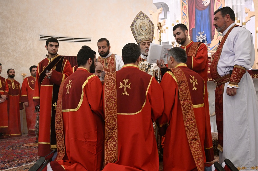 The momentous liturgy was further enriched by the conferral of sacred orders. During the service, Archbishop Derderian granted the four minor orders of acolyte to Razmik Gevorgyan and ordained Vartan Arzumanyan, David Yesayan, Aram Hovhannisyan, and Telman Arakelyan into the Diaconate. Addressing the newly ordained, His Eminence urged them to remain unwavering in their ancestral Christian faith and to serve the Lord with selfless love and enduring commitment, emphasizing the sacred calling of their ministry at the altar and in the life of the Church.