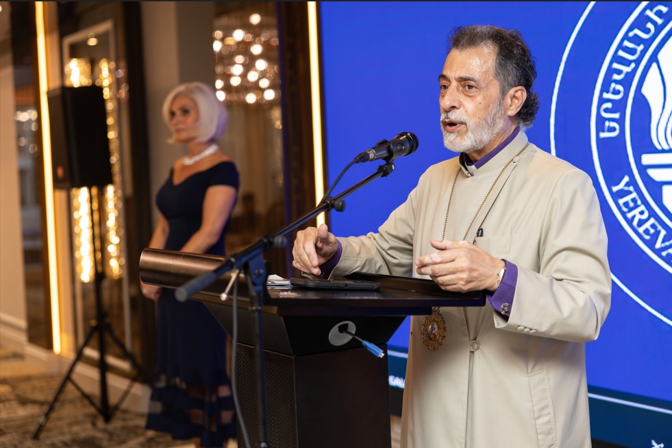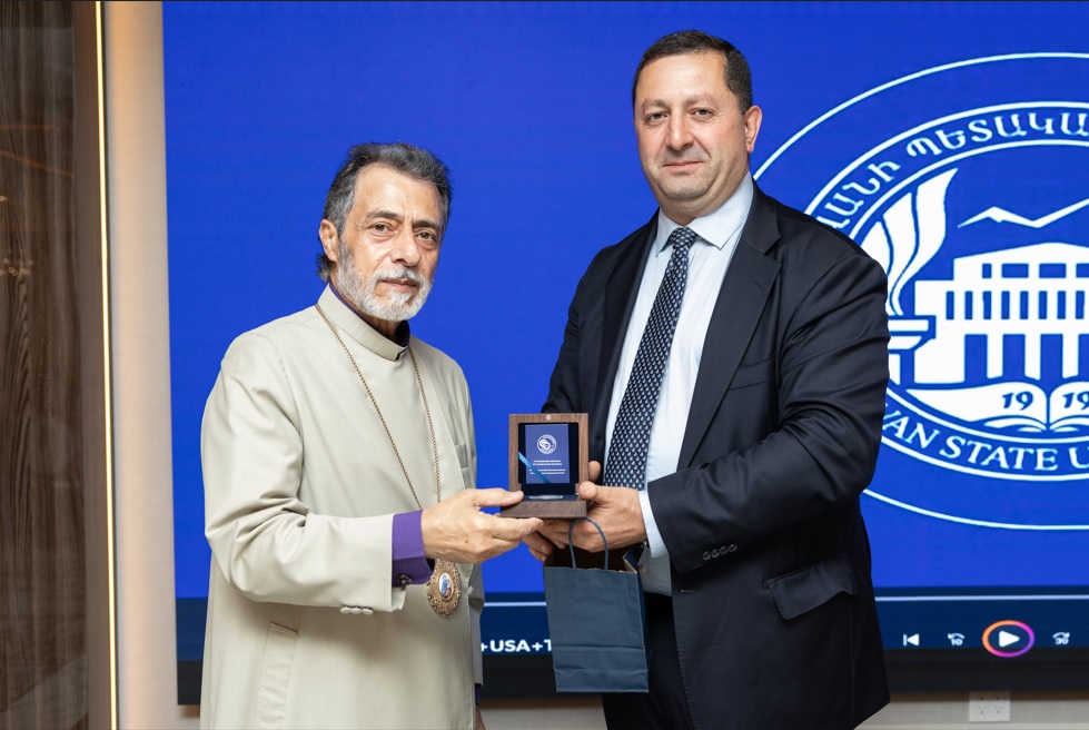 YSU Rector Dr. Hovhannes Hovhannisyan extended his gratitude to His Eminence and the FoYSU Board for their unwavering commitment to the University’s advancement. He presented the wide-ranging reforms currently underway at YSU, aimed at modernizing academic programs, enhancing research and innovation, upgrading infrastructure, and expanding international partnerships.