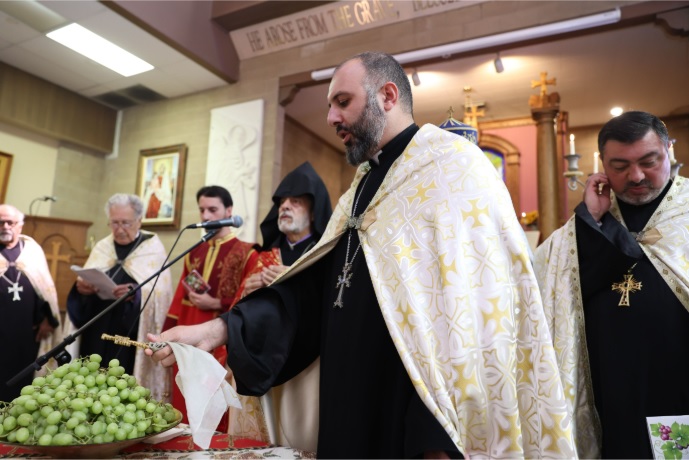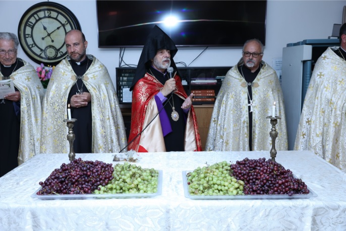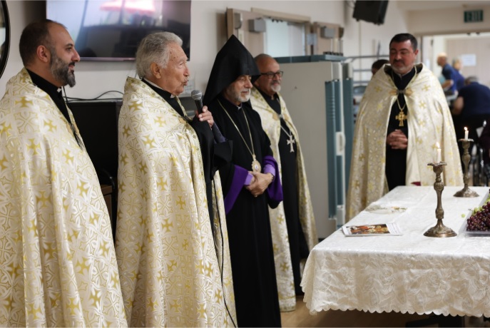 On Tuesday, August 12, 2025, the serene halls of the Ararat Home of Los Angeles were filled with prayer and thanksgiving as the Diocesan Primate, Archbishop Hovnan Derderian, together with clergy of the Western Diocese, visited the elderly residents to celebrate the Feast of the Assumption as well as conduct the traditional Blessing of the Grapes service.