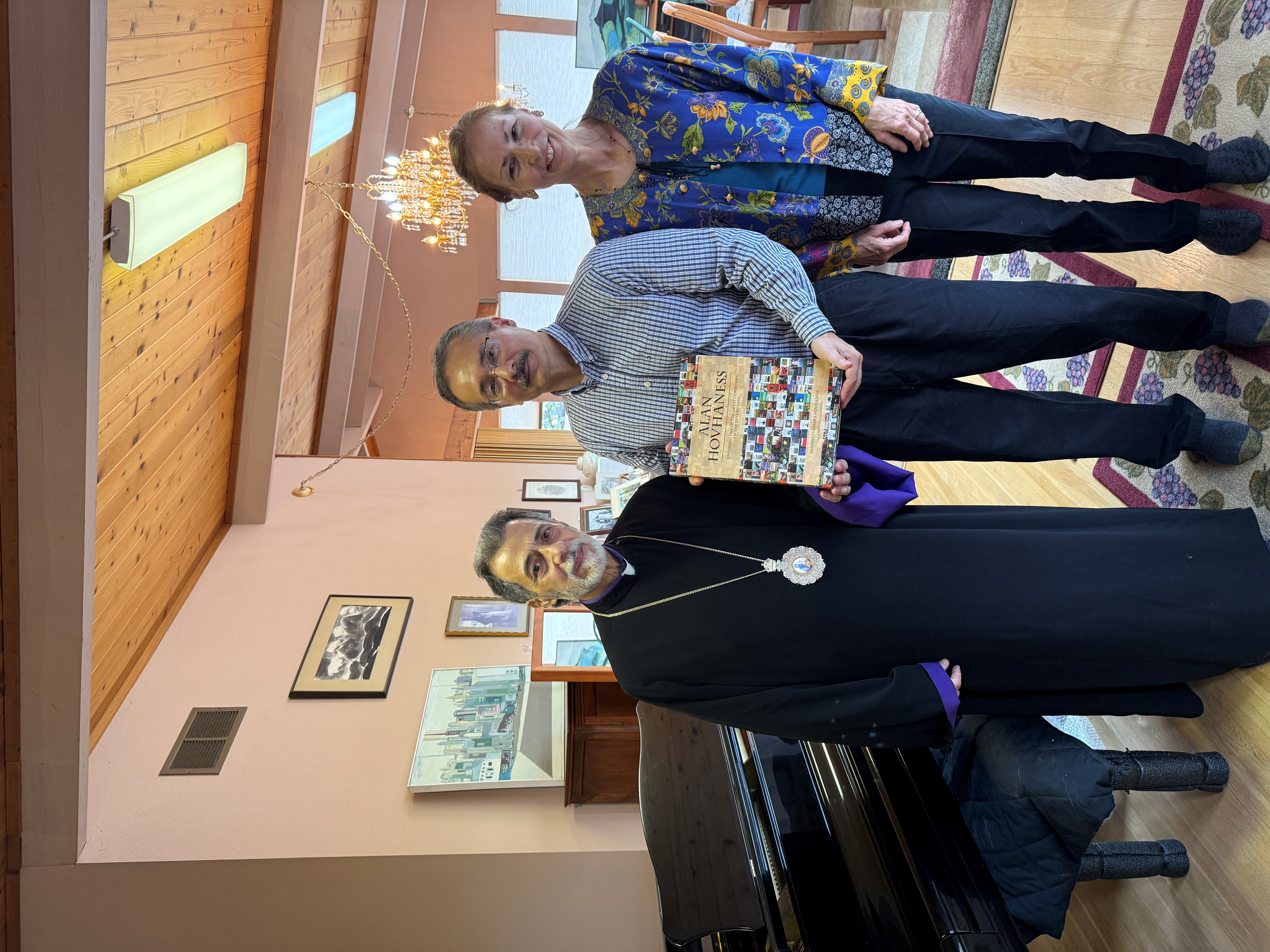 On Monday, September 29, the Diocesan Primate Archbishop Hovnan Derderian, accompanied by Archpriest Fr. Vazgen Boyajyan and Karina Stepanyants, a parishioner of Holy Resurrection Armenian Church of Seattle, visited the late composer’s home. The visit was marked by a special “home blessing service,” during which Archbishop Derderian reflected on the enduring spiritual and cultural contributions of Hovhaness. Deeply moved by the manuscripts and memories preserved in the home, the Archbishop noted Hovhaness’s profound spiritual bond with significant Armenian figures, most notably Khrimian Hayrik, the beloved father figure of the Armenian Church.