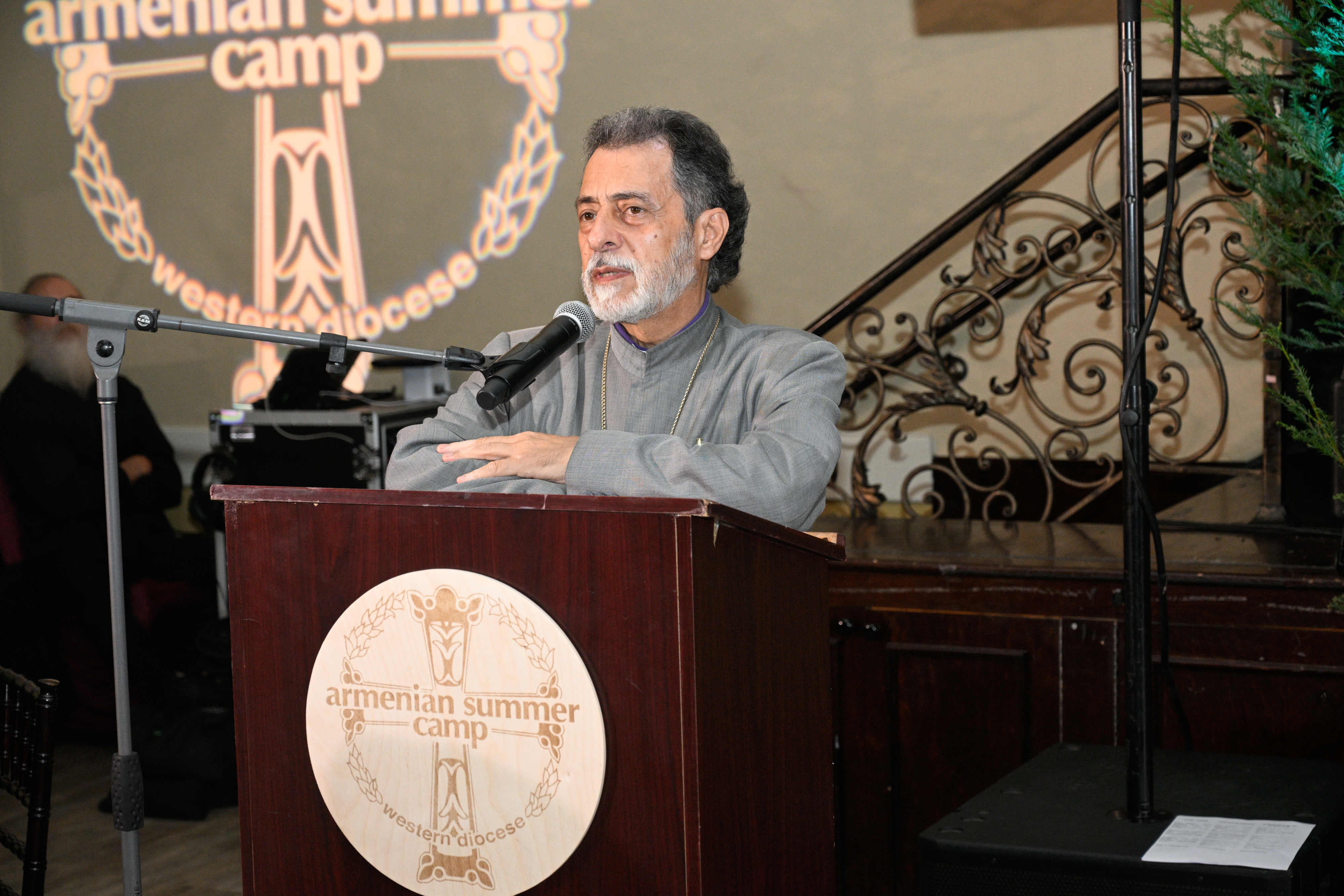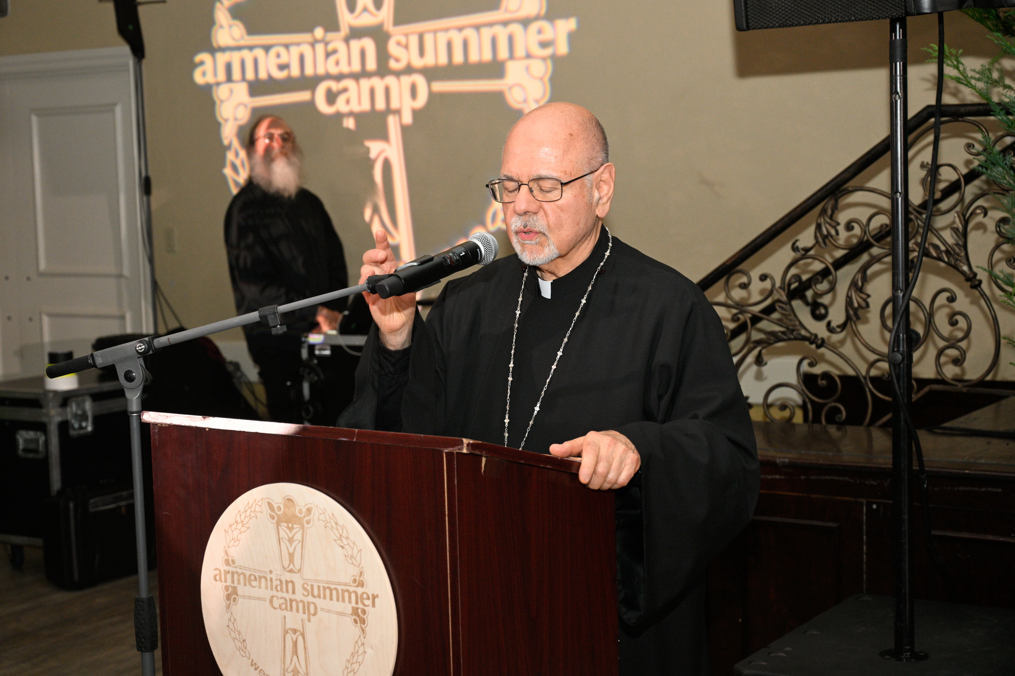 The banquet featured a stirring tribute delivered by 60th Anniversary Gala Co-Chair Vartan Hovsepian, in honor of his uncle, Archbishop Vatche Hovsepian—a visionary leader who secured the camp’s permanent home in Dunlap, California, in 1987. Entertainment by the Hagopian Family Band and Harry “Elvis” Shahoian enlivened the evening, while formal commemoration speeches were offered by Fr. Vazken Movsesian, former Camp Committee Chair, and Diocesan Council Chair Derik Ghookasian. In one of the night’s most moving moments, eleven clergymen joined voices in performing Archbishop Hovsepian’s favorite hymn, “Lerner Hayreni.” The banquet concluded with the benediction and closing prayer of Archbishop Derderian, leaving participants with a spirit of gratitude and renewed commitment to the camp’s mission.