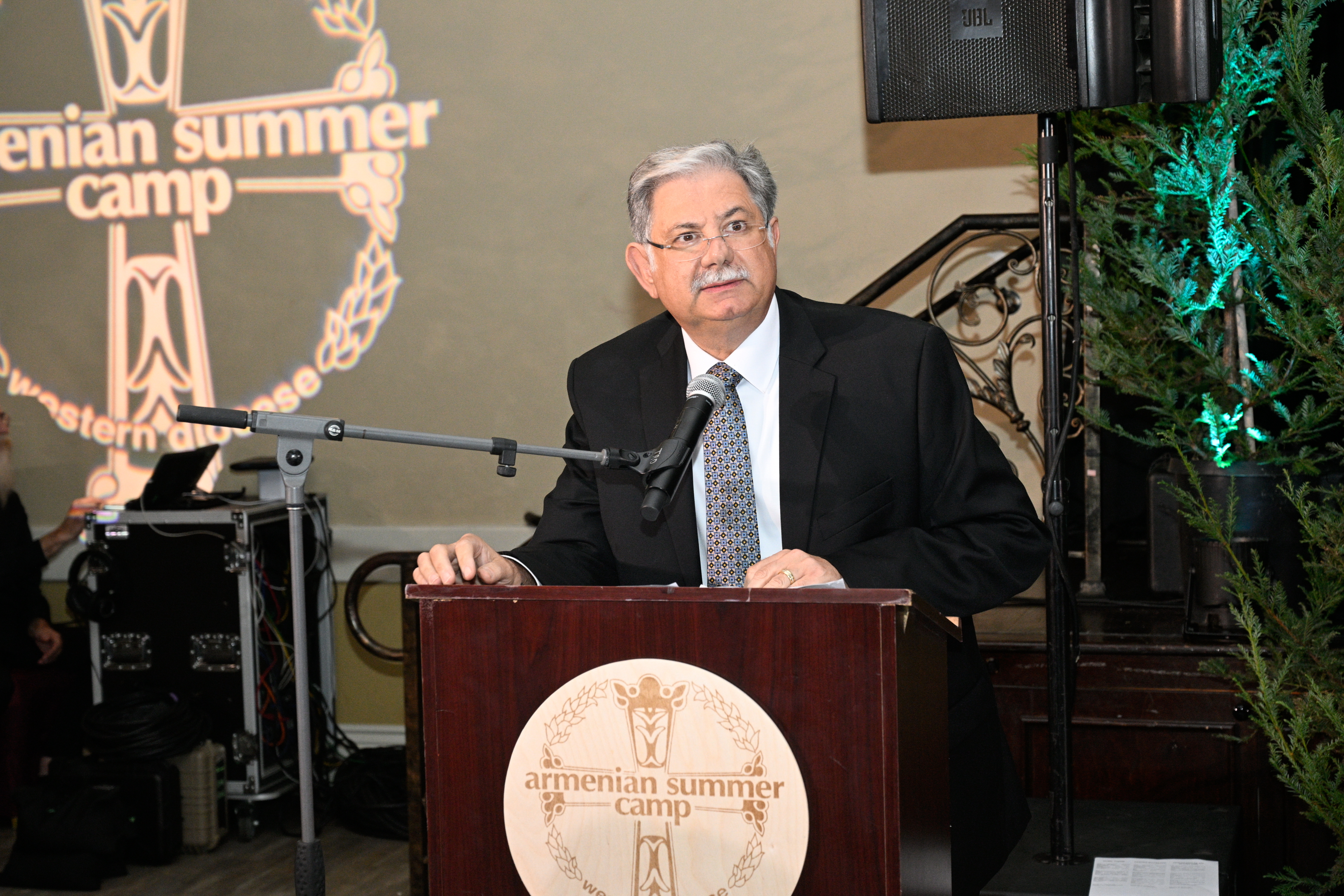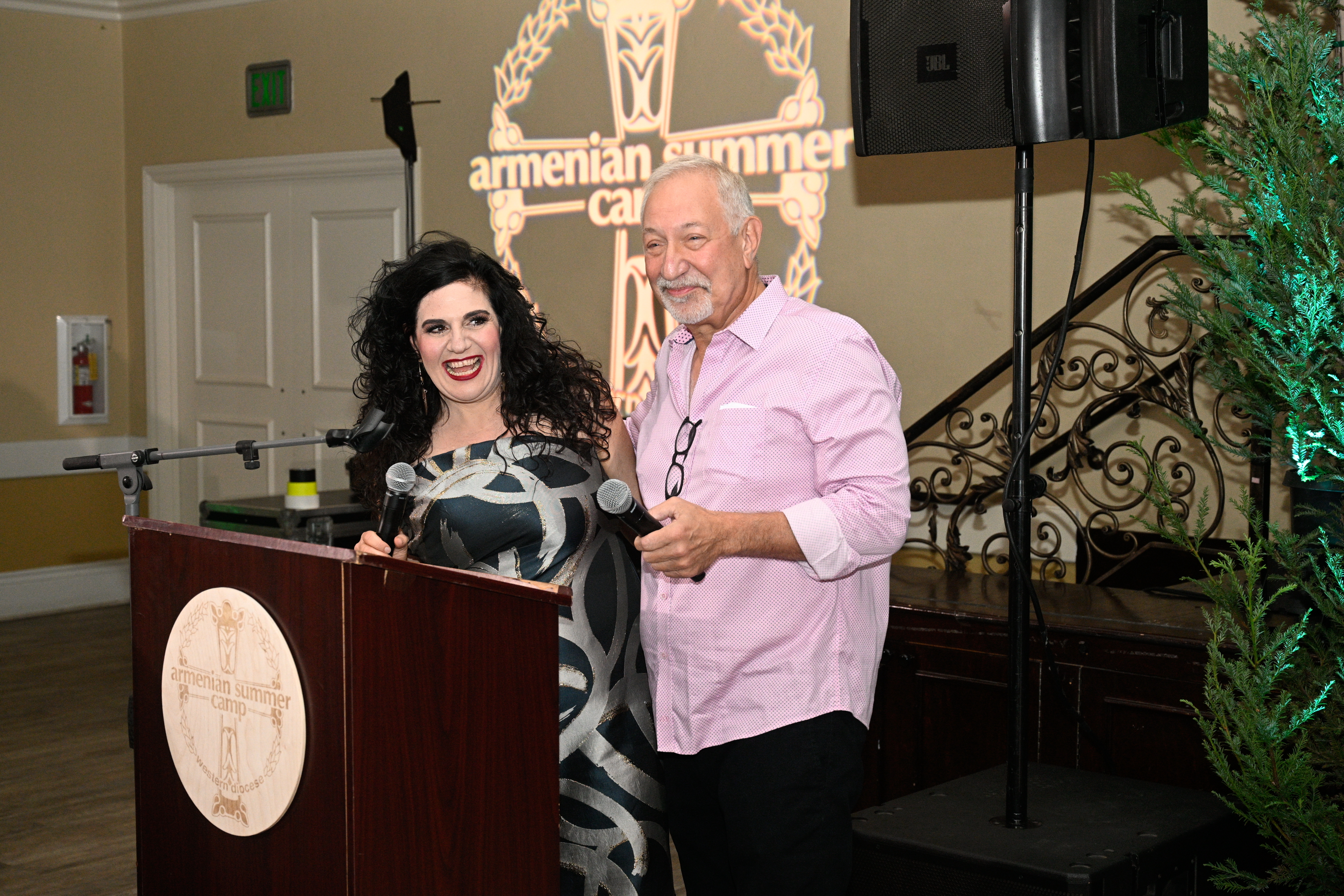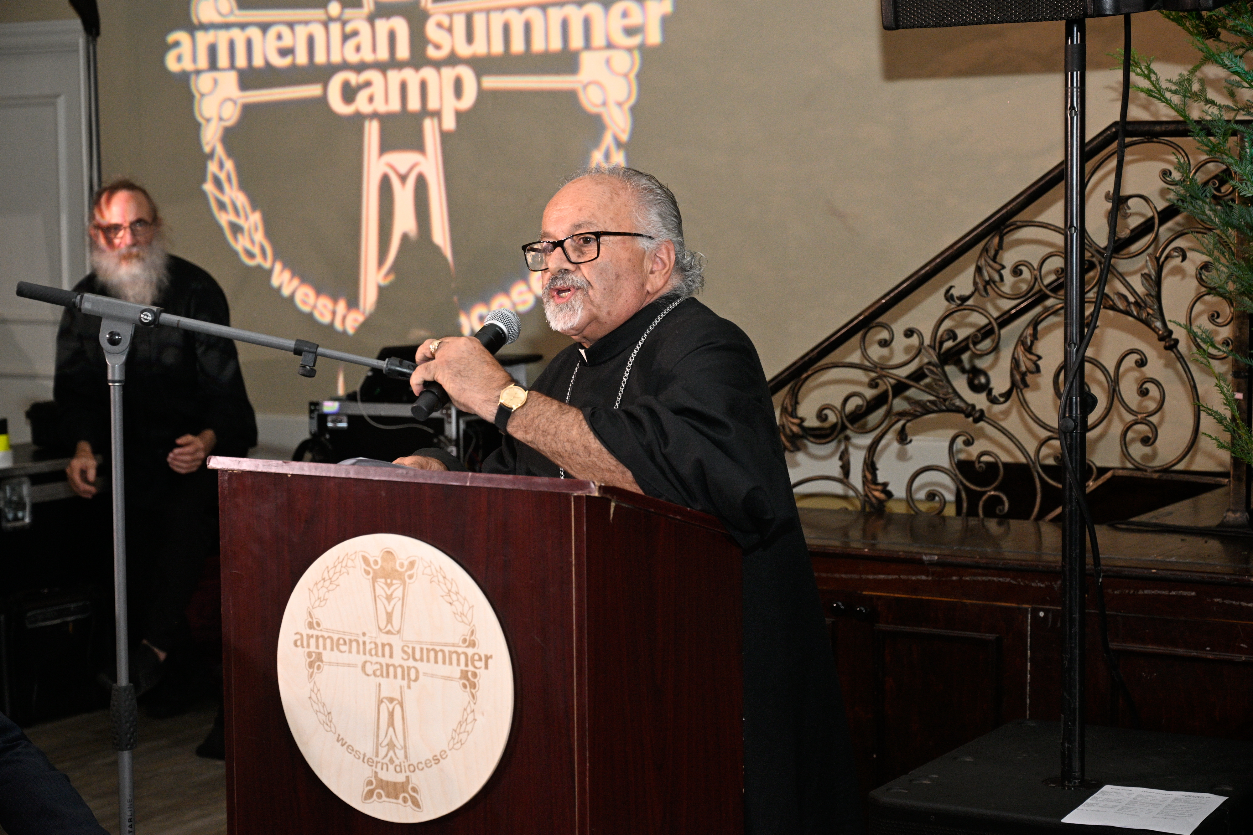 The 60th anniversary reached its peak with a sold-out gala banquet on Saturday, September 27, 2025, at the Geragos Hall of St. Gregory the Illuminator Armenian Church, attended by more than 420 guests. Gala Co-Chairs Steve Hampar and Asbed Tatoulian warmly welcomed attendees, while Mark Geragos and Lory Tatoulian served as engaging emcees. The evening opened with a prayer and reflections by Archpriest Fr. Sarkis Petoyan, who spoke movingly about the camp’s profound influence in his own life. Fr. Mardiros Chevian, Dean of St. Nersess Armenian Theological Seminary in New York, delivered the invocation at the invitation of the pastor of the host parish. Western Diocese Camp Board Executive Director Lauren Diramerian highlighted ongoing and future projects, underscoring the camp’s continued vitality.