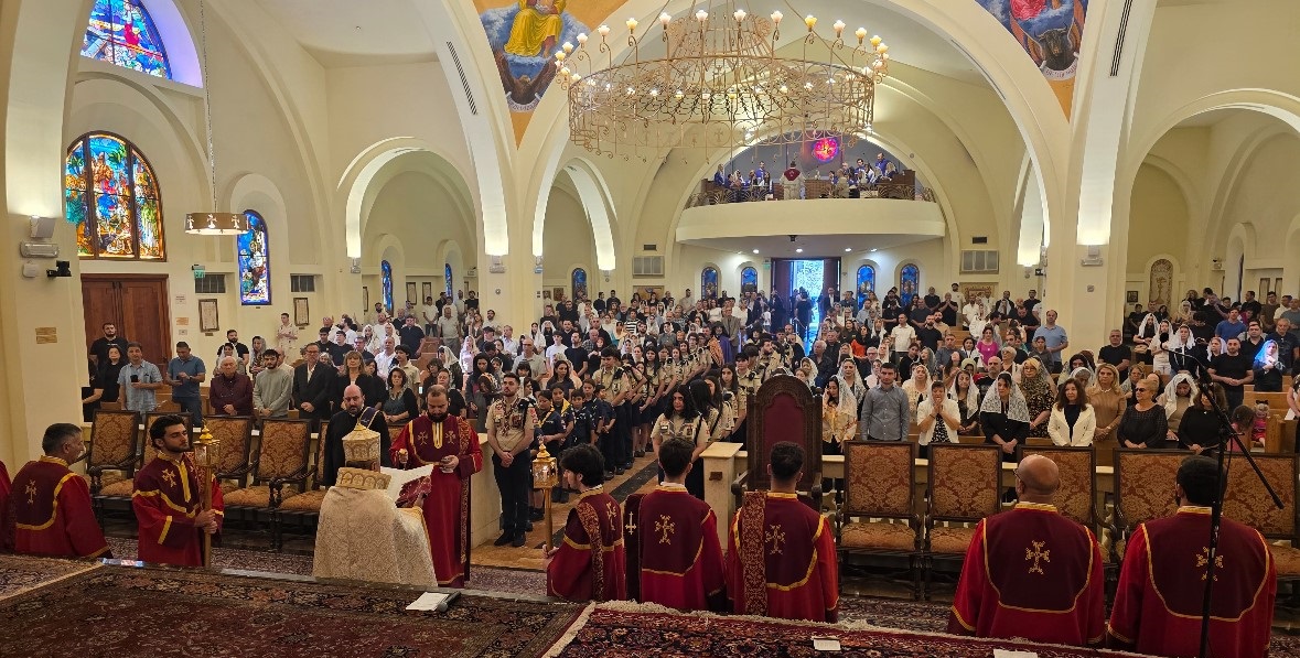 On Sunday, October 19, 2025, the scouts of the Homenetmen Sipan Chapter of Burbank participated in the Divine Liturgy celebrated at St. Leon (Ghevontiants) Armenian Cathedral in Burbank. The scouts took part in the solemn requiem service offered in memory of the founders of Homenetmen, honoring their legacy of service, discipline, and dedication to Armenian youth. During the service, the Diocesan Primate commended the scouts for their noble mission and steadfast commitment to the values of faith, community, and leadership. The scouts also received Holy Communion, reaffirming their spiritual connection to the Armenian Church and its teachings.