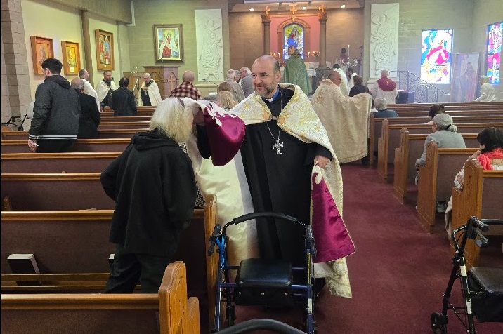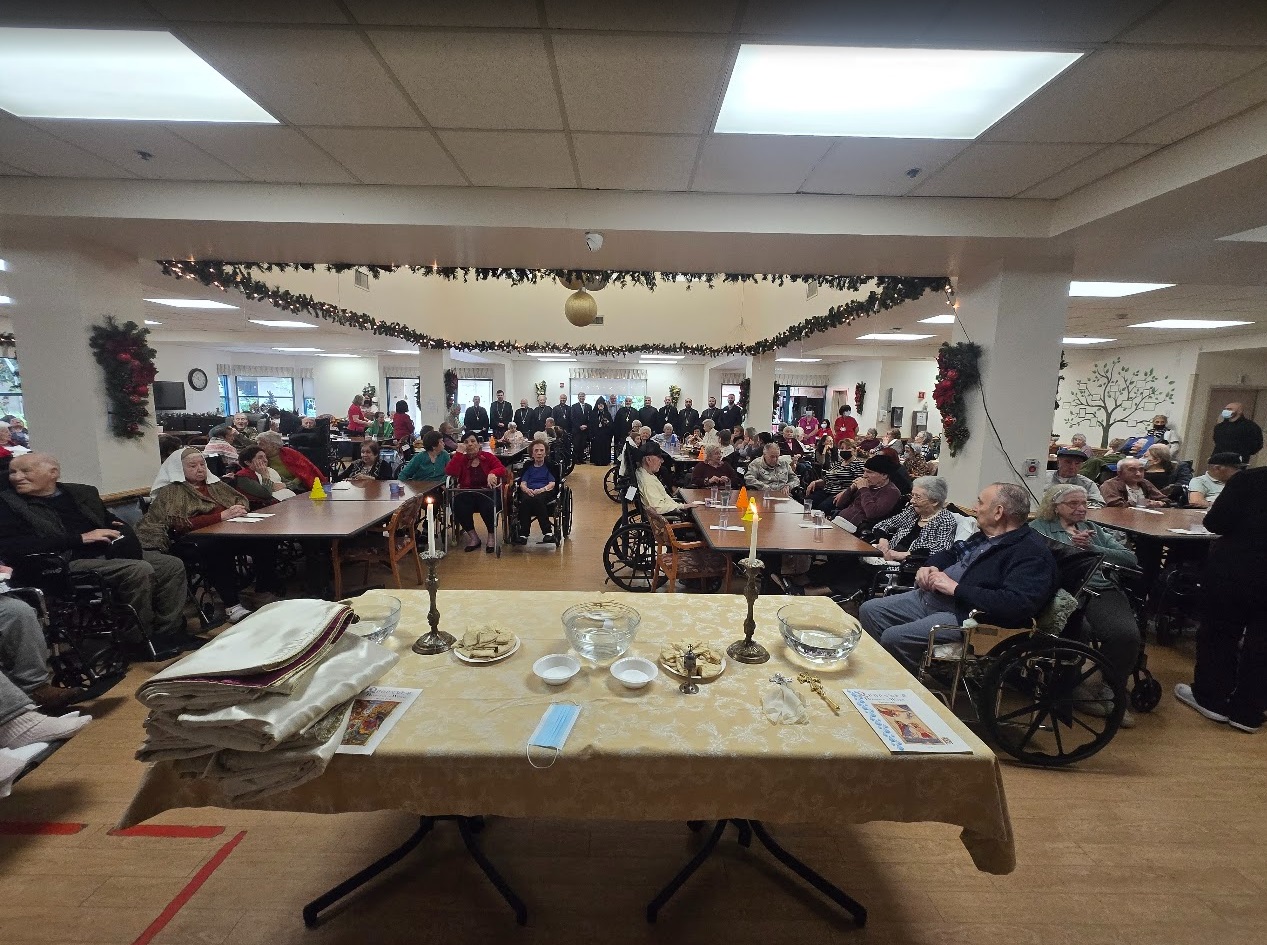In the skilled nursing facility, the clergy greeted the residents with the traditional Nativity Greeting Christ is Born and Revealed, Blessed is the Revelation of Christ.