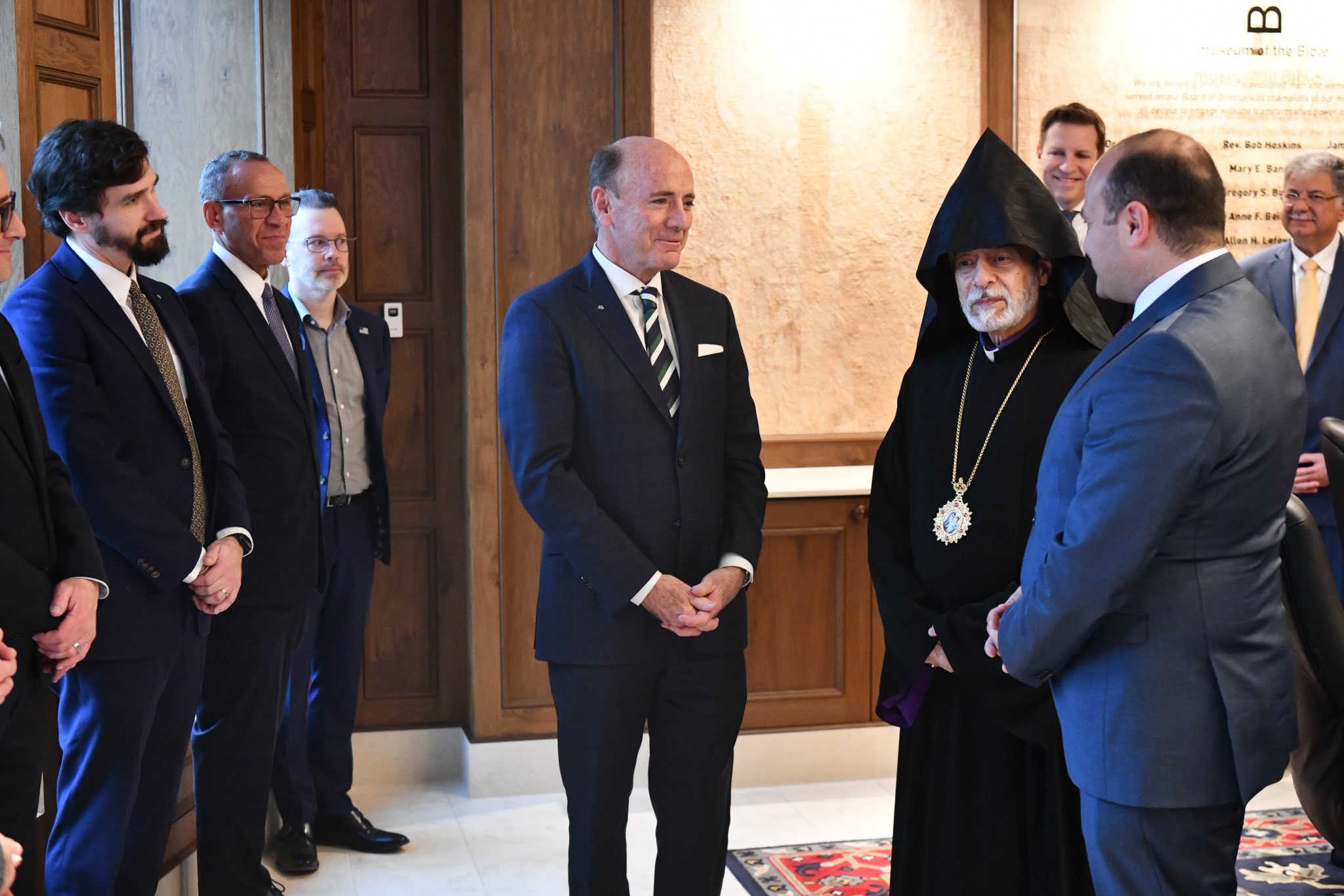 On January 9, 2026, His Eminence Archbishop Hovnan Derderian, Diocesan Primate of the Western Diocese of the Armenian Church of North America, accompanied by Diocesan Council Chairman Mr. Derik Ghookasian and the Diocese’s Executive Director, Deacon Harout Markarian, attended a special ceremonial event at the Museum of the Bible in Washington, D.C.