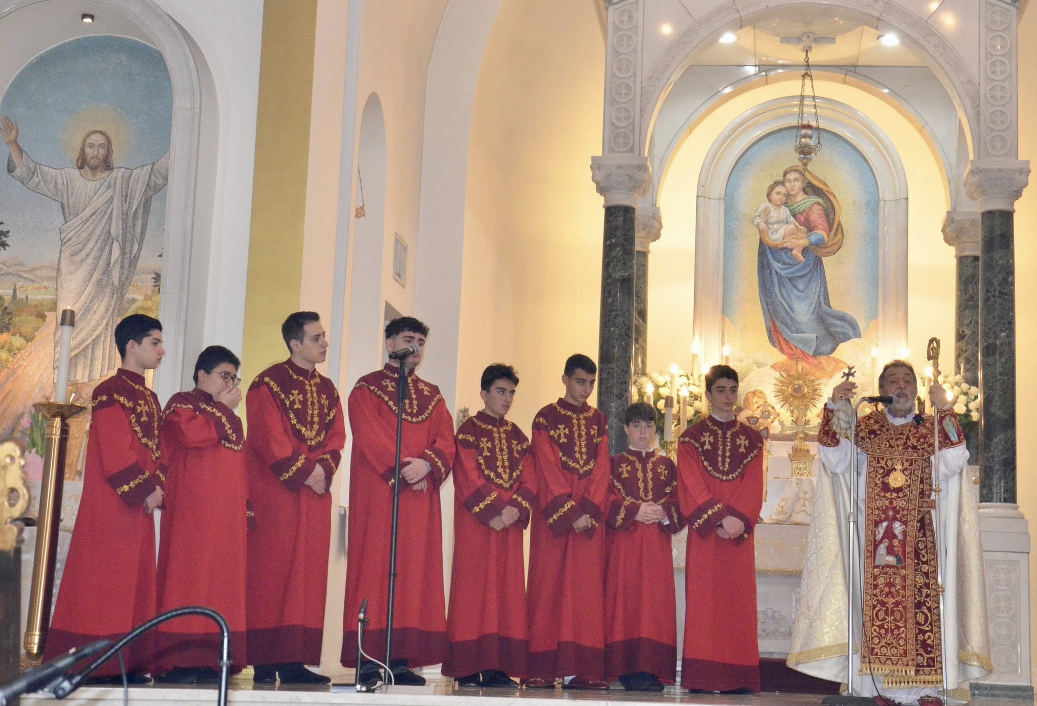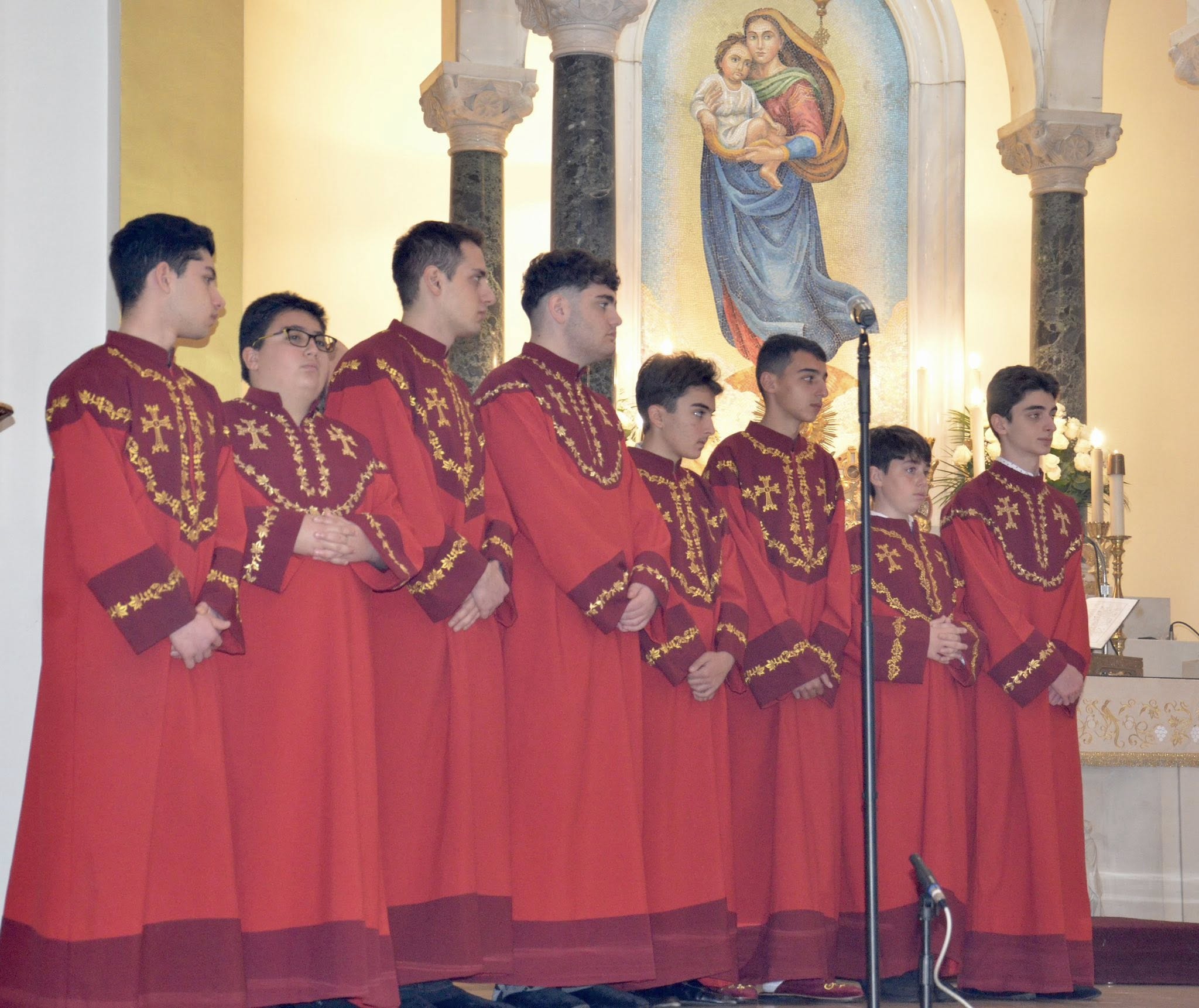During the sacred service, a special moment was marked as St. Peter’s altar servers Ara Joseph Kalpakciyan, Arsen Hakobyan, Shiraz Leon, Gregory Alanjian, John Mazedzyan, Tigran Manukyan, Adrian Minassian, and Jack Balayan were granted the four minor orders of acolyte by Archbishop Derderian. This meaningful rite recognized their devotion to the Holy Altar and their growing commitment to serving the Armenian Church with reverence, discipline, and faith. The Primate encouraged the newly- ordained acolytes to remain steadfast in their service, viewing their calling as both an honor and a sacred responsibility.