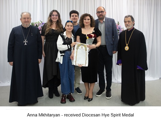 Mrs. Anna Mkhitaryan — awarded the Armenian Diocese’s Distinguished Medal by His Eminence in recognition of her outstanding service within the Cultural Organization.