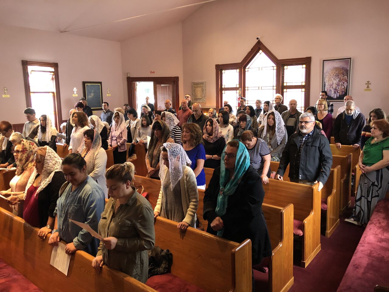 Ժամանումին կատարուեցաւ Առաւօտեան ժամերգութիւն, ուխտաւորները խնդրեցին Ս. Գէորգ զօրավարի բարեխօսութիւնը: Ժամերգութեան աւարտին Հոգեւոր հովիւ՝ Տէր Մաշտոց Քհնյ. Քէշիշեան իր պատգամին մէջ բարի գալուստ մաղթեց Սիաթլի հաւատացեալներուն, որ իրենց ժամանակը տրամադրելով ներկայ գտնուեցան ուխտագնացութեան, եւ նաեւ արժեւորեց այս մօտեցումը որպէս միջհամայնքային կեանքի կարեւոր իրադարձութիւն, ապա ներկայացուց սուրբերու բարեխօսութեան եւ ուխտագնացութեան կարեւորութիւնը հաւատացեալի կեանքին մէջ: Ապա Սիաթլի Հոգեւոր հովիւ՝ Տէր Վազգէն Քհնյ. Պոյաճեան շնորհակալութիւն յայտնեց ջերմ ընդունելութեան համար եւ մաղթեց որ կրկնուի այսպիսի ուխտագնացութիւններ, որպէսզի երկու նահանգի համայնքներուն կապը աւելիով ամրապնդուի: Ժամերգութենէն ետք եկեղեցւոյ սրահին մէջ հաւատացեալները մասնակցեցան մատաղի ճաշին, որ պատրաստուած էր ժրաջան տիկնանց յանձնախումբի կողմէ: