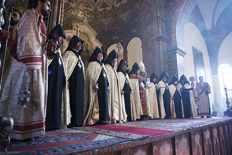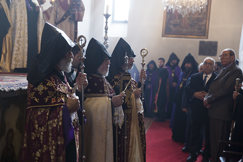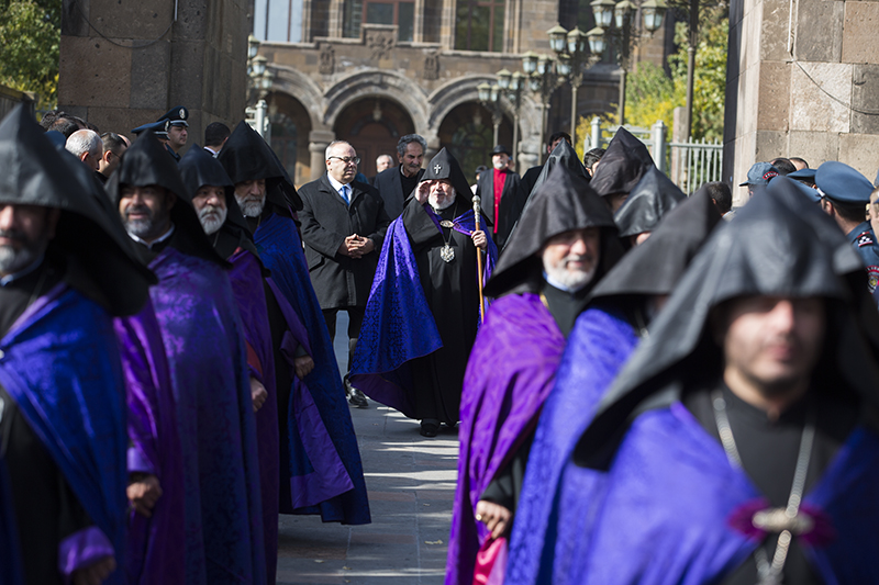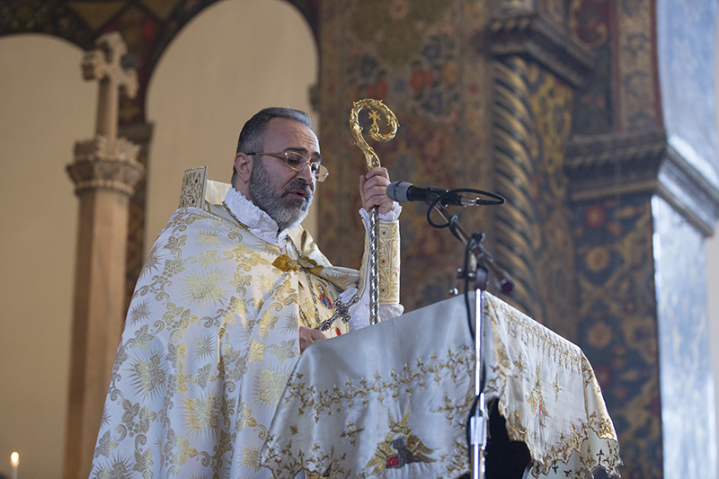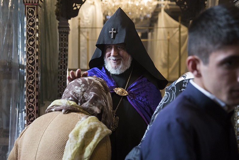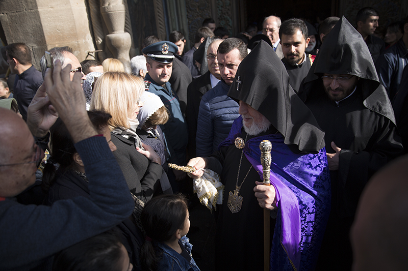 … Վեհափառ Տէր, իբրեւ Հայոց Հայրապետ, դուք ձեր իմաստութեամբ, աշխատասիրութեամբ ու խոնարհութեամբ բոլորիս ցոյց էք տալիս, թէ ինչպէ՛ս յաղթահարել այդ մարտահրաւէրները` Հայ Եկեղեցին առաջնորդելով առաւել զօրացման: Իբրեւ քաջ հովիւ եւ առաջնորդ ունենալով Ձերդ Սրբութեանը՝ Հայոց Եկեղեցին եւ հայ հոգեւորականութիւնն այսօր շարունակում են իրենց առաքելութիւնը, որ եղել է եւ կայ Տիրոջ փրկչարար խօսքի քարոզչութիւնն ու լոյսի տարածումը, ազգային եւ քրիստոնէական արժէքների պահպանումն ու տարածումը», - ասաց պատարագիչ Սրբազանը` փաստելով, որ հակառակ բազում խոչընդոտների ու դժուարութիւնների Աստծոյ կամքով Եկեղեցին զօրանում ու շէնանում է նոր եւ կրթեալ սպասաւորներով, նորոգուող եւ կառուցուող սրբավայրերով, նոր սերնդի մէջ ազգային արժէքների սերմանմամբ, հաւատքի աճով ու նուիրումով: