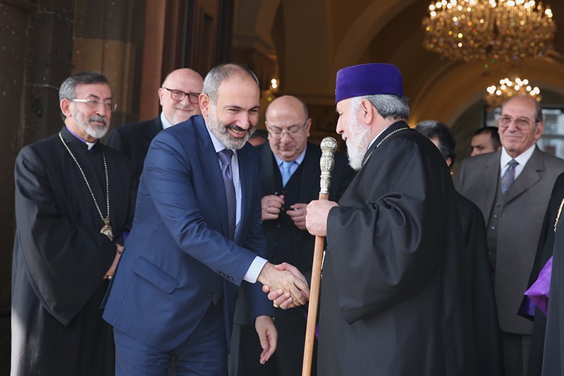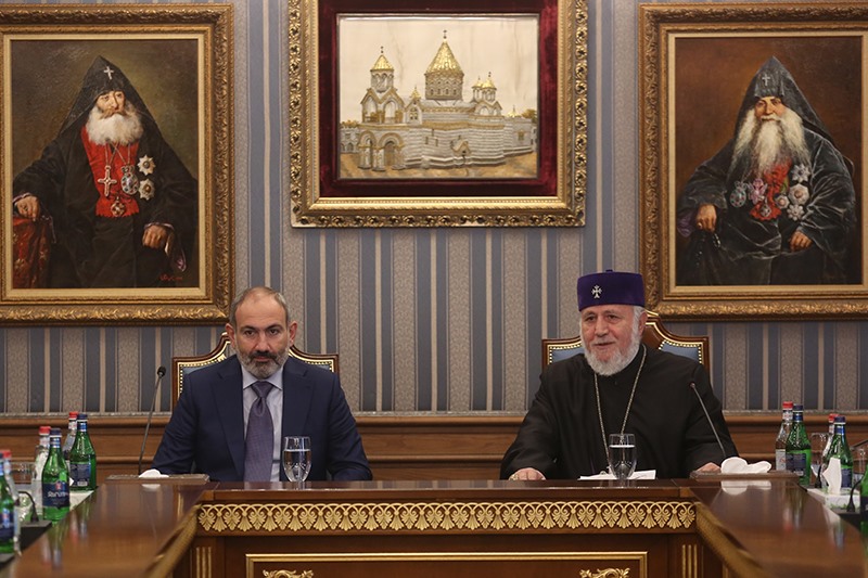 Այնուհետեւ իր խօսքը ներկաներին ուղղեց ՀՀ վարչապետ Նիկոլ Փաշինեանը: «Ի հարկէ նման հանդիպումների կարիքը եւ անհրաժեշտութիւնը կայ, գուցէ աւելի յաճախ, քան տեղի է ունենում: Ընդհանուր առմամբ, ի հարկէ, ինչպէս Վեհափառը նշեց, պետութիւն-եկեղեցի յարաբերութիւնների հետ կապուած քննարկումները շատ կարեւոր են, առաւել եւս նոր իրավիճակում եւ նոր պայմաններում, որ այսօր ունենք Հայաստանի Հանրապետութիւնում: Այդ պայմաններն ու յարաբերութիւններն ունեն բազմաթիւ նրբութիւններ եւ ես յոյս ունեմ, որ այսօր այդ նրբութիւնների կարեւոր դէտալներին մենք հնարաւորութիւն կ'ունենանք անդրադառնալ: