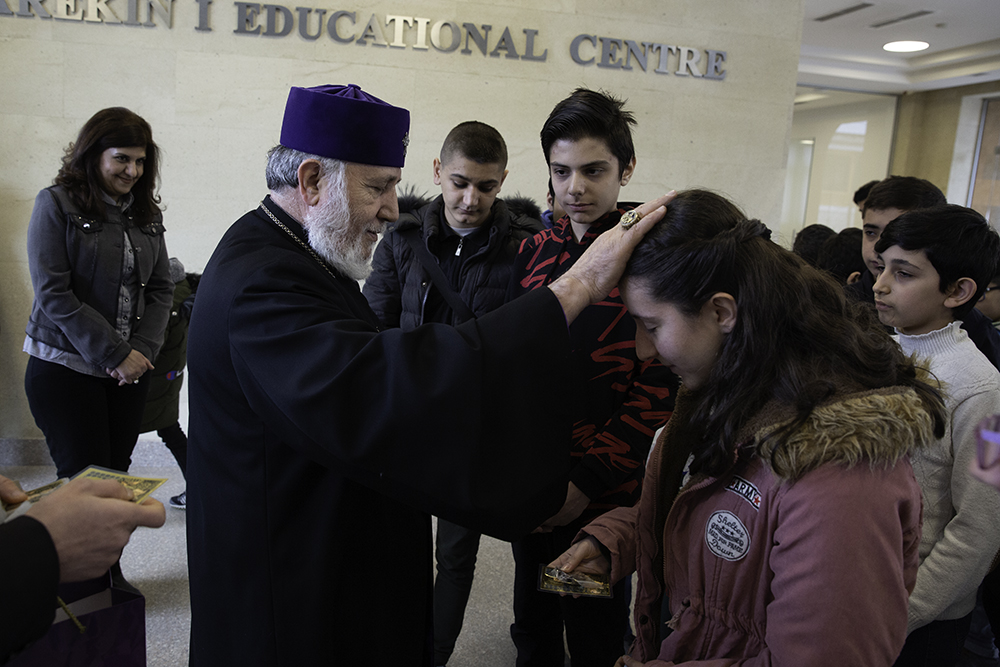 Ողջունելով մանուկներին` Ամենայն Հայոց Հայրապետն իր սէրն ու օրհնութիւնը բերեց նրանց եւ իր գնահատանքը փոխանցեց նրանց ծնողներին, ինչպէս նաեւ այն բոլոր կազմակերպութիւններին, որոնք իրենց զօրակցութիւնն ու օժանդակութիւնն են բերում Հայաստանում հաստատուած սիրիահայ ընտանիքներին: