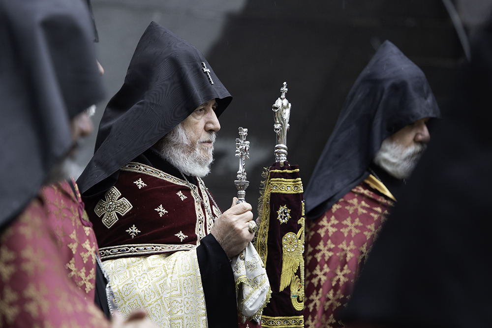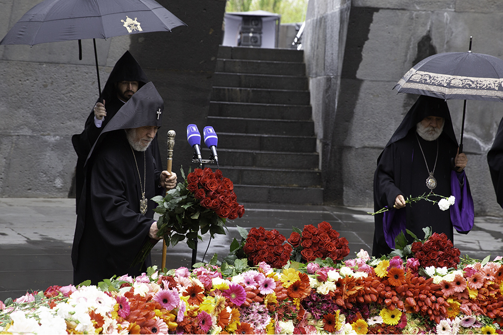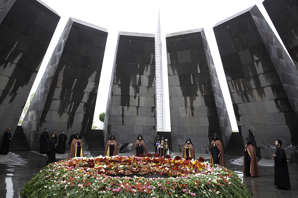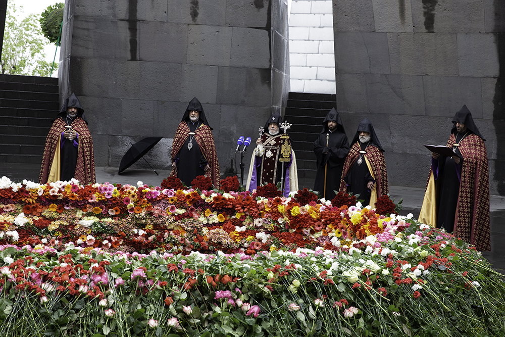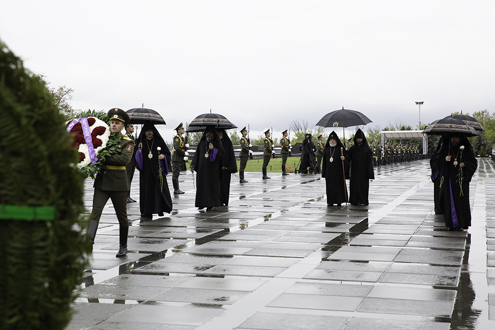 Ծաղկեպսակի զետեղումից յետոյ յուշահամալիրում՝ անմար կրակի առջեւ, Վեհափառ Հայրապետի նախագահութեամբ կատարուեց Հայոց Ցեղասպանութեան սուրբ նահատակների բարեխօսական կարգ: