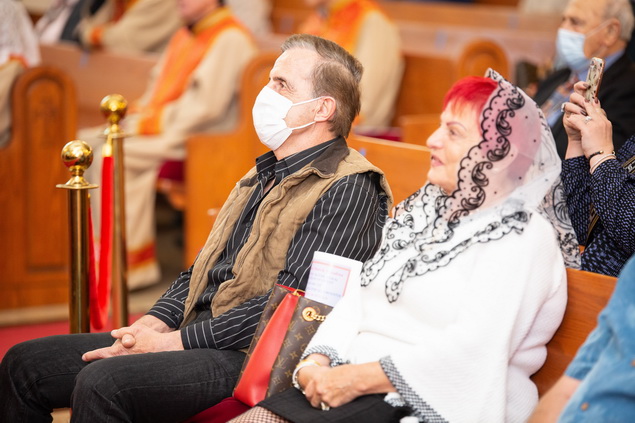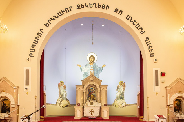 Այս նկարներուն պատրաստութեան ծախսը հոգաց ինչպէս նաեւ եկեղեցւոյ մօտ հիմնադրամ մը հաստատեց Տիար Յարութիւն Այվազեան, 300,000 տոլար նուիրելով։ Առաւօտեան ժամը 10։30-ին սկսաւ եպիսկոպոսական պատարագը։ Սուրբ Խորանին պատարագիչ եպիսկոպոսին կը սպասարկէին Տէր Վազգէն եւ Տէր Գէորգ քահանաները։ Գեղաձայն երգչախումբը ղեկավարութեամբ մայէսթրօ Պարթեւ Կուլումեանին եւ երգեհոնահարութեամբ Կիւրեղ Մանկրեանի, պարզապէս հիասքանչ էր, բառ եւ խօսք չունինք նկարագրելու համար այդ երգչախումբի եւ ղեկավարին կատարումները։
