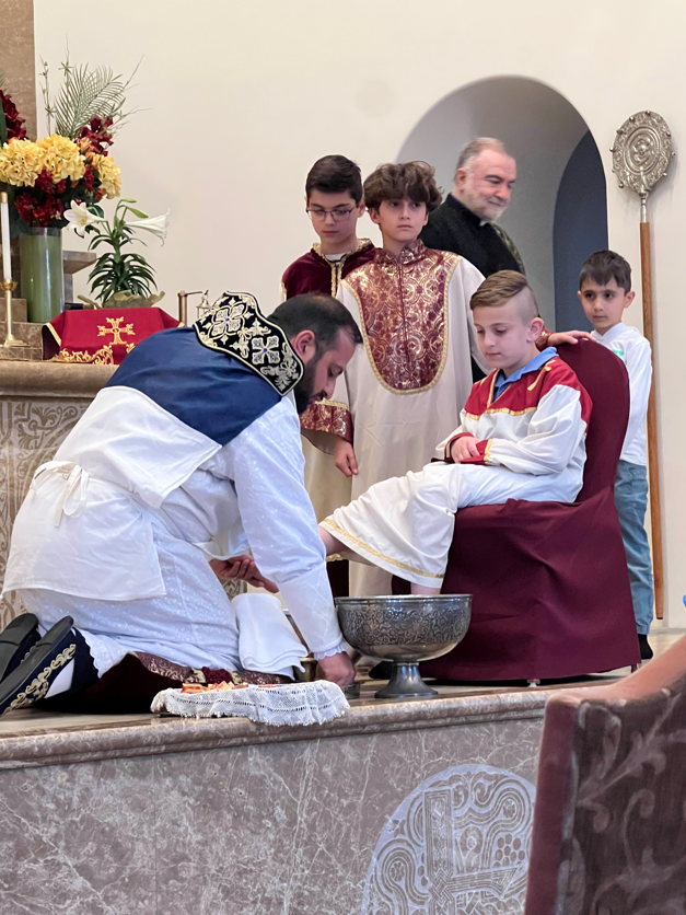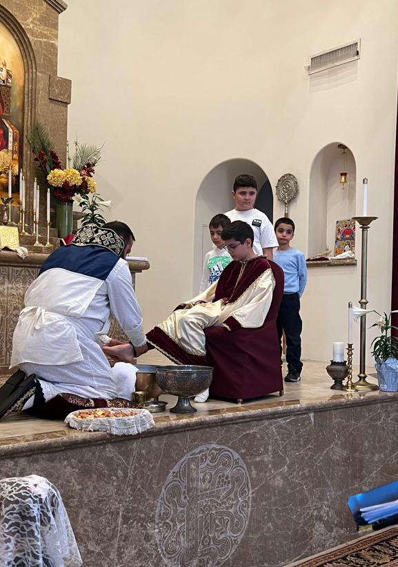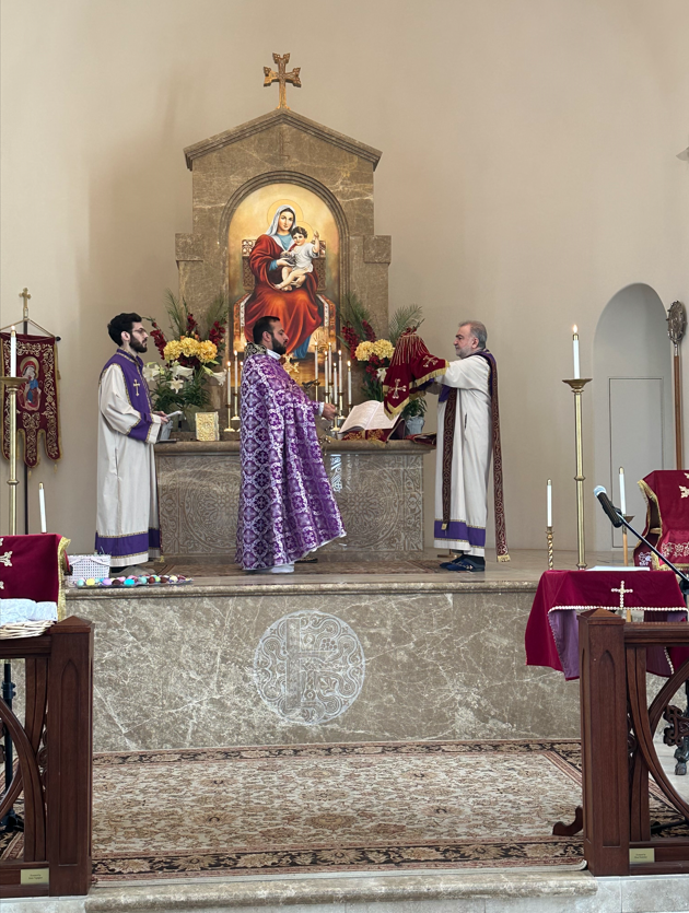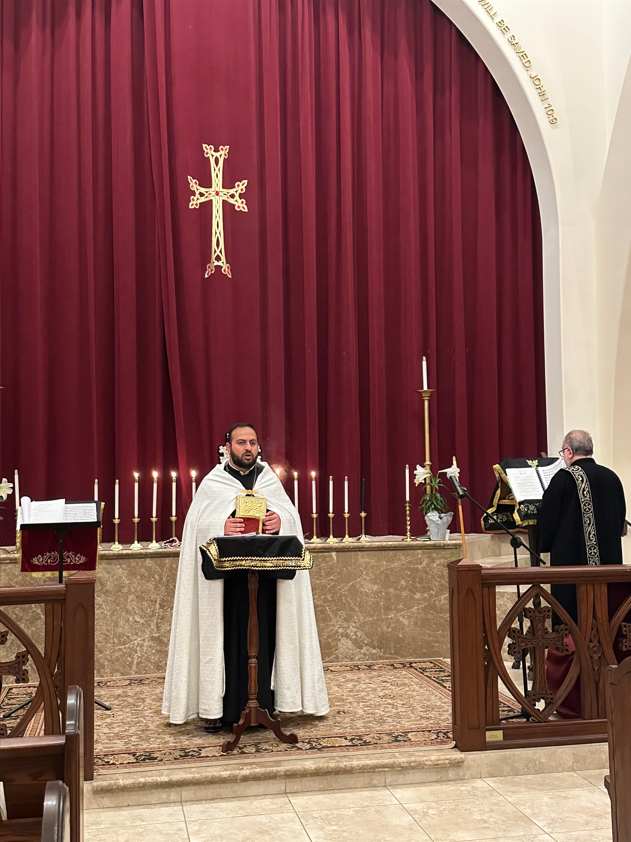 Օրհնությամբ Արևմտյան թեմի բարեխնամ առաջնորդ Գերաշնորհ Տ․ Հովնան Արք․ Տերտերյանի՝ այս տարի Սբ․ Կարապետ եկեղեցում Ավագ Շաբաթվա խորհրդակատարություններին հյուրաբար քահանայագործեց Արժանապատիվ Տ․ Նժդեհ Քհն․ Քեշիշյանը ՝ օգնությամբ Բարեշնորհ Գևորգ Սրկ․ Գևորգյանի։