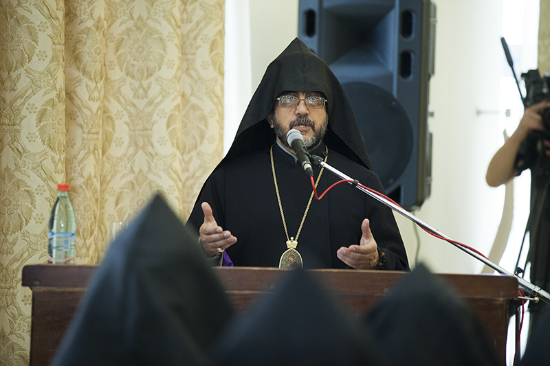 Այնուհետեւ բացման խօսք ասաց կազմակերպիչ յանձնախմբի նախագահ, Շիրակի թեմի առաջնորդ Գերաշնորհ Տ. Միքայէլ եպիսկոպոս Աջապահեանը: