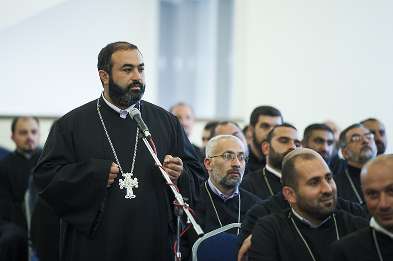 Ծիսական հարցերի շուրջ զեկոյցներով հանդէս եկան Արժանապատիւ Տ. Զոհրապ քահանայ Մանասեանը (Կոտայքի թեմ) եւ Արժանապատիւ Տ. Նշան քահանայ Պանֆեօրովը (Շիրակի թեմ): Ծխական քահանաների կրթադաստիարակչական  գործունէութեան վերաբերեալ զեկոյց ներկայացրեց Արժանապատիւ Տ. Շաւարշ քահանայ Սիմոնեանը (Տաւուշի թեմ):