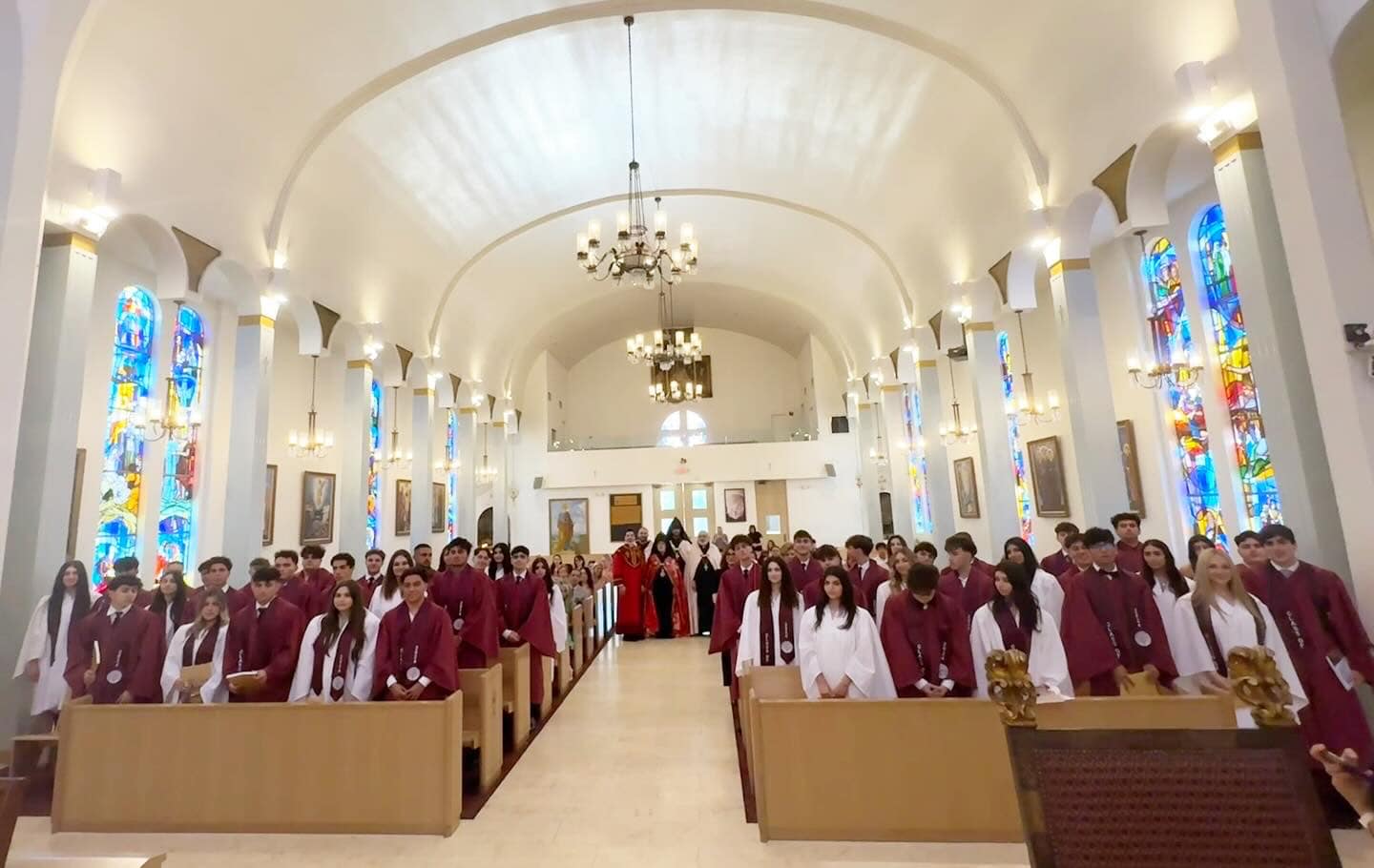 Ապա Արբազան հօր նախագահութեամբ տեղի ունեցաւ ժամերգութիւն, որու աւարտին շրջանաւարտները ստացան սուրբ Հաղորդութիւն եւ ապա միաբերան կատարեցին ուխտագրի ընթերցումը, ուր անոնք խոստացան բարձր պահել դպրոցին անունը, պահպանել հայ գիրն ու մեր հոգեմտաւոր արժէքները: