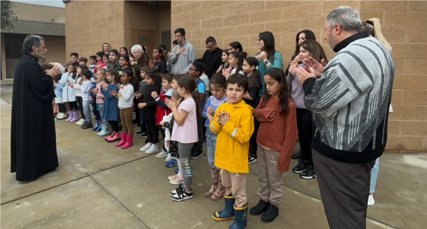 Առաջնորդ Սրբազանն այցելեց նաև եկեղեցու Շաբաթօրյա վարժարանի սաներին: Կարծես ցնծությունն էր թագավորում եկեղեցու դասարաններում և բակում։ Աշակերտները մեծ ուշադրությամբ ունկդրեցին սրբազան հորը, լսեցին նրա խորհուրդներն ու պատգամները։ Դպրոցականները պատվավոր հյուրին զարմացրեցին իրենց գիտելիքներով ու ազգային երգերի գեղեցիկ կատարումներով։ Որպես գնահատական իրենց անձնվեր աշխատանքի՝ սրբազան հայրն ուսուցիչներին փոխանցեց գեղեցիկ հուշանվերներ։ Այնուհետև եկեղեցու բակում Առաջնորդի հետ աշակերտները, ծնողները և ուսուցիչներն իրենց աղոթքը բարձրացրեցին Բարձյալին և ստացան սրբազան հոր օրհնությունը։