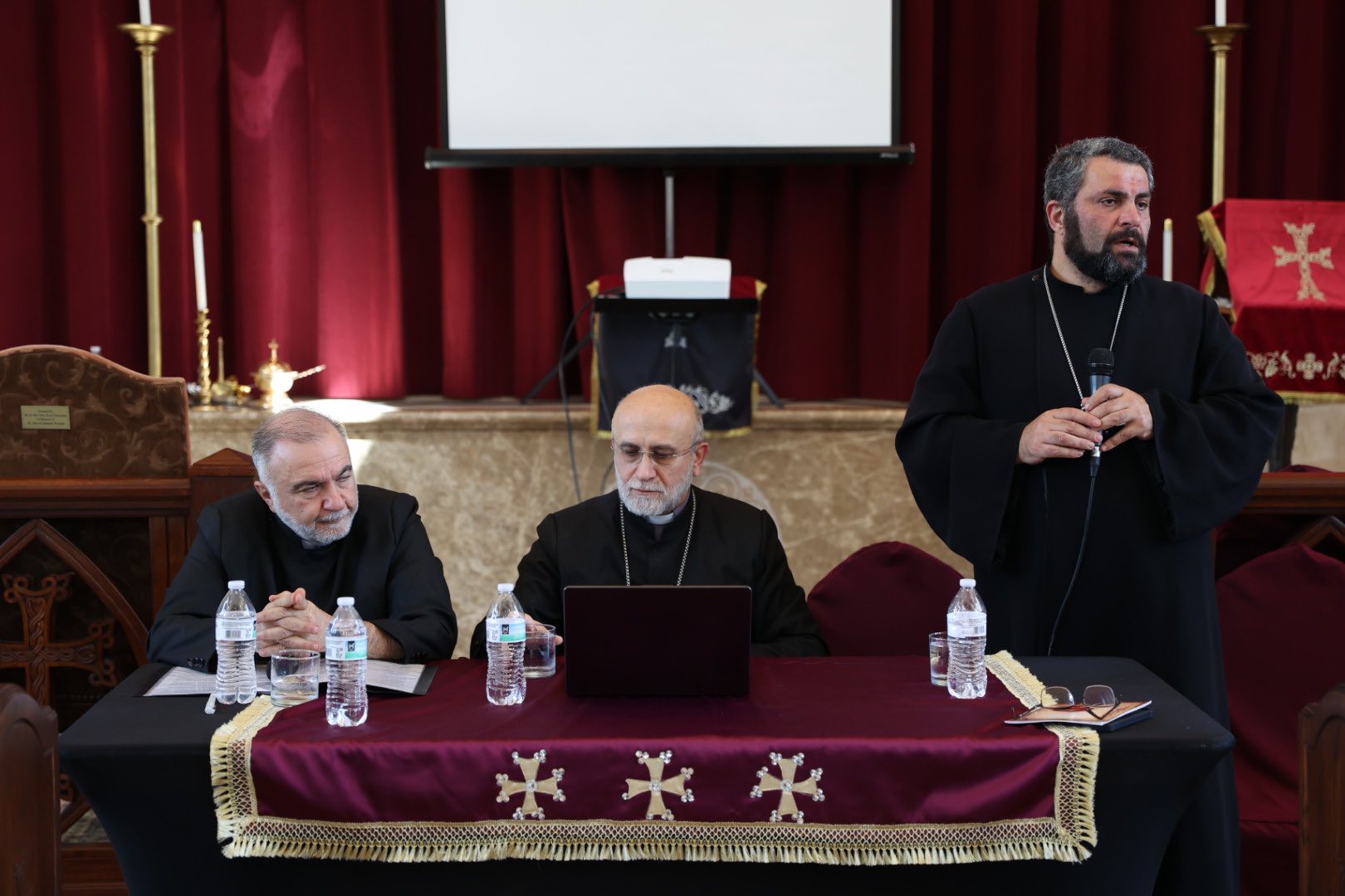 Ամերիկայի Միացեալ Նահանգներու Արեւմտեան Թեմի Պատգամաւորական 98-րդ ժողովի նախորդող օր, Հինգշաբթի Մայիս 1-ի յետմիջօրէին, նախագահութեամբ Արեւմտեան Թեմի Առաջնորդ՝ Գերաշնորհ Տէր Յովնան Արք. Տէրտէրեանին եւ հիւրընկալութեամբ Անապատի Սուրբ Կարապետ Հայաստանեայց Առաքելական Եկեղեցւոյ, գումարուեցաւ Թեմի Հոգեւորականաց Ժողովը մասնակցութեամբ Թեմի հոգեւորականաց դասուն: Բացման աղօթքին սկիզբը Սրբազան Հօր առաջնորդութեամբ «հոգւոց» կարդացուեցաւ Արեւմտեան Թեմի հոգելոյս Առաջնորդներու եւ հոգեւորականներու յիշատակին։ Սրբազան Հայրը ապա իր խորհրդածութիւնը կեդրոնացուց Նոր Կիրակիի ճաշու Աւետարանէն քաղուած հետեւեալ հատուածին շուրջ․- «Եղեւ այր մի առաքեալ յԱստուծոյ, անուն նմա Յովհաննէս: Սա եկն ի վկայութիւն, զի վկայեսցէ վասն Լուսոյն, զի ամենեքին հաւատասցեն նովաւ: Ոչ էր նա Լոյսն, այլ զի վկայեսցէ վասն Լուսոյն» (Յհ 1:5)։ Սրբազանը ըսաւ, որ «որպէս հոգեւորականներ, Յովհաննէս Մկրտիչի կեանքը մեզի մտածել կու տայ մեր քահանայական կոչումի մասին, որ մեր ծառայական կեանքի ընթացքին որպէս ընտրեալները Աստուծոյ պարտինք մենք եւս վկայութիւն տալ Տիրոջ եւ Փրկչին Յիսուս Քրիստոսի մասին»։ Սրբազանը աւելցուց, որ քահանայական ուխտն ու կոչումը մեզ կը պարտաւորեցնեն Եկեղեցւոյ ծառայութեան քաղցր լուծը վերցնելու եւ մեր հոգեմտաւոր կեանքին առանցքը Քրիստոսը դարձնելու։