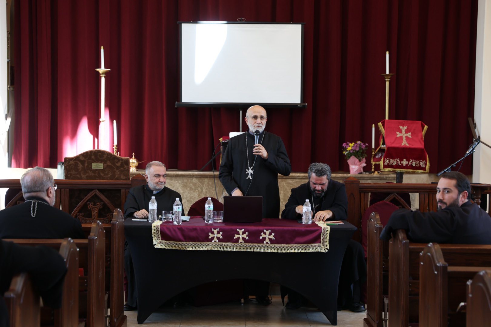 Սրբազանը իր խօսքին մէջ ըսաւ, որ «մեր կոչումն է ծառայել Աստուծոյ եւ մեր հաւատաւոր ժողովուրդին սիրով ու խոնարհութեամբ, որպէս լաւագոյն ճանապարհը իմաստաւորուած կեանքին»: Ան շեշտեց, որ «միասին աղօթելու գլխաւոր նպատակն է իրարմով զօրանալ, լսել մէկզմիւսին եւ հաստատ մնալ դէպի Աստուած առաջնորդող ճանապարհին մէջ»: Սրբազանը մաղթեց, որ Հոգեւորականաց Ժողովը «առիթ մը եւս հանդիսանայ, որ մենք զմեզ զգանք Վերնատան մէջ եւ ակնդէտ սպասենք, որ Սուրբ Հոգին լուսաւորէ մեր ողջ էութիւնը աստուածային պարգեւներով, որպէսզի հաւատքի իմաստութեամբ կատարենք ինքնաքննութիւն եւ ապա խոստում, դէպի՝ ծառայութեան»: Եւ որովհետեւ Առաջնորդարանի եւ անոր բոլոր ծուխերու ծառայութեան կիզակէտը կը մնայ մեր ազգի զաւակները, Սրբազանը ըսաւ, որ « դաշտ վերադառնալու հոգեպէս առաւել ամրացած պիտի լծուինք հաւատաւոր մեր ժողովուրդին քարոզել Աստուծոյ խօսքը՝ Քրիստոսի կեանքին մէջ բացուած»: