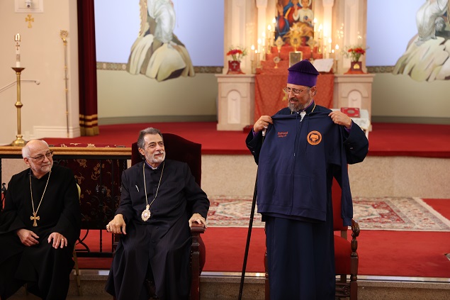 Հանդիպման աւարտին Պատրիարք Հայրը օրհնեց ներկաները եւ բոլոր հոգեւորականներուն նուիրեց յիշատակի լանջախաչեր։