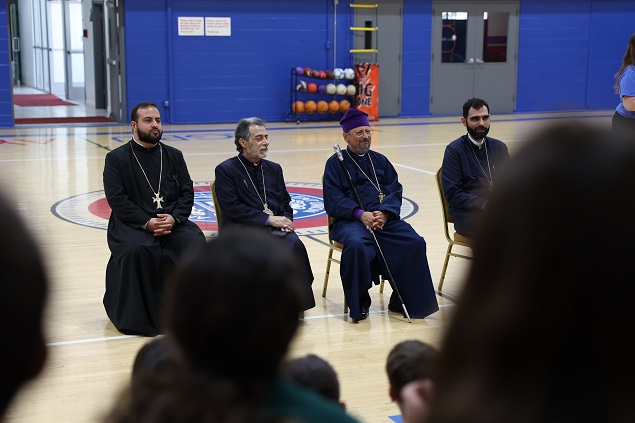 Սահակ Մեսրոպ վարժարանի պատասխանատուները բարի գալուստ մաղթելէ ետք Պատրիարք Հօր եւ Առաջնորդ Սրբազան Հօր, հակիրճ կերպով ներկայացուցին վարժարանին պատմականը։ Ապա, Բարձրաշնորհ Տէր Յովնան Արքեպիսկոպոս Տէրտէրեան աշակերտներուն ծանօթացուց Պատրիարք Հայրը, յայտնելով, թէ՝ Նորին Ամենապատուութիւնը հեռաւոր Ստանպուլ քաղաքէն ժամանած է Լոս Անճէլըս եւ իր պատմական այցելութեամբ կը ծանօթանայ Արեւմտեան Թեմի զանազան հաստատութիւններուն, իր հայրական օրհնութիւնները բաշխելով բոլորին։