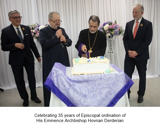 Շաբաթ 7 Փետրուարի երեկոյեան հանդիսաւոր ընդունելութիւն մը տեղի ունեցաւ ի պատիւ Բարձրաշորհ Սրբազան Հօր, կազմակերպութեամբ Սուրբ Անդրէաս Հայաստանեայց Առաքելական Եկեղեցւոյ Հոգեւոր Հովիւ՝ Արժանապատիւ Տէր Տաթեւ Աւագ Քահանայ Յարութիւնեանին եւ Ծխական Խորհուրդի անդամներուն։ Պաշտօնական ընթրիքի ընթացքին համայնքի պատասխանատուներուն եւ ծխայիններու ներկայութեամբ մասնաւոր յայտագրով ու մեծ շուքով նշուեցաւ Սրբազան Հօր Եպիսկոպոսական ձեռնադրութեան եւ օծման 35 ամեակը՝ որպէս բազմամեայ հովուական ծառայութեան, առաջնորդական անձնուրաց նուիրումի եւ եկեղեցաշէն վաստակի արժեւորում։