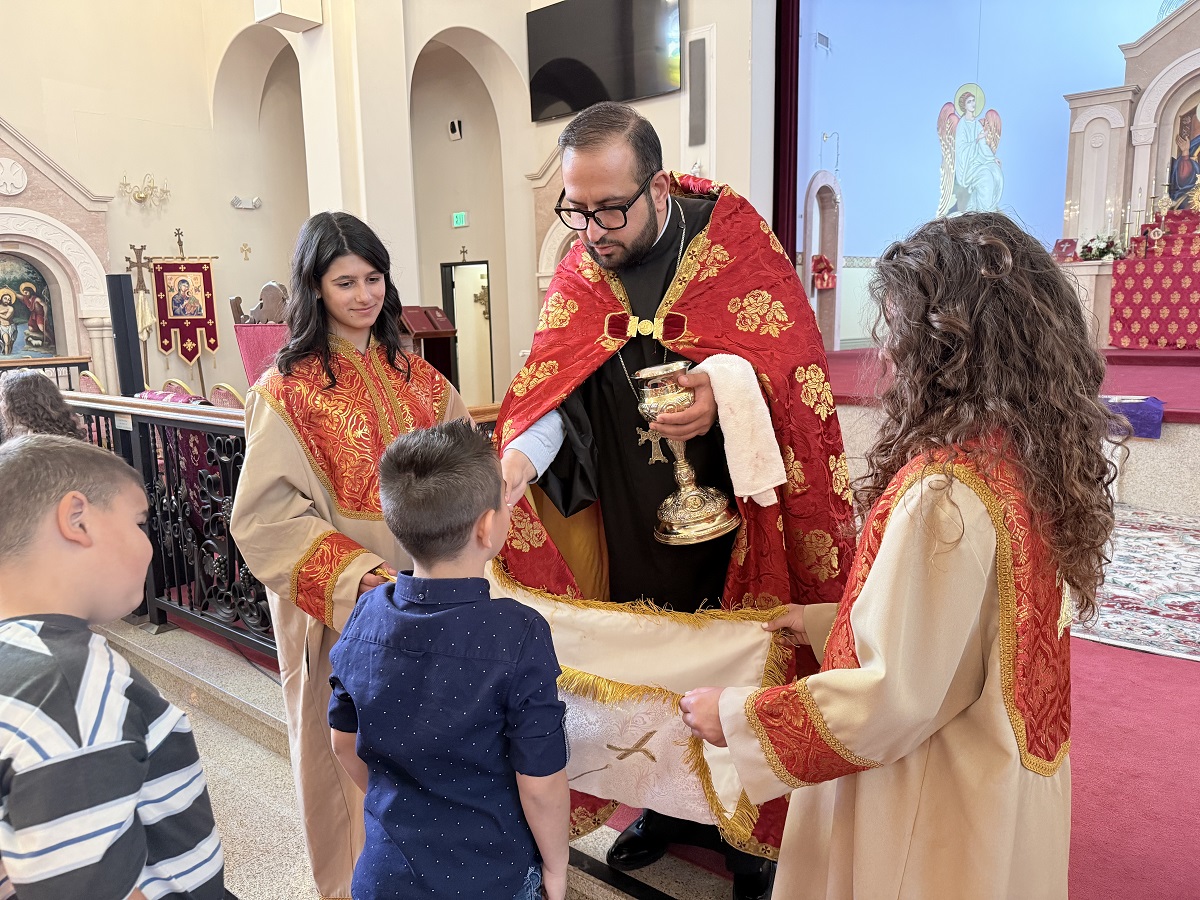 Օրհնությամբ՝ Արևմտյան թեմի Առաջնորդ Գերաշնորհ Տեր Հովնան Արքեպիսկոպոս Տերտերյանի՝ սույն թվականի Մարտի 27-ին առավոտյան, Տեր Նժդեհ Քահանա Քեշիշյանը մասնակցեց Փասադենայի Հովսեփյան ամենօրյա վարժարանի Հաղորդության բաշխման ավանդական կարգին։