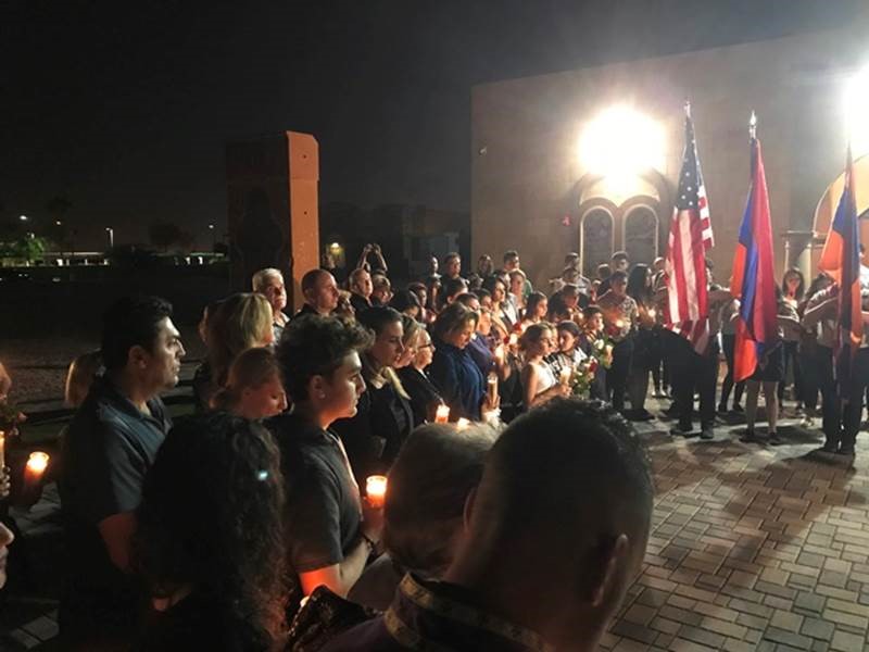 Հինգշաբթի 5 Հոկտեմբեր 2017ը թուականի երեկոյան ժամը 7։00ին Տ. Սասուն Ծ. Վրդ. Զմրուխտեանի, Ս. Կիրակոս Հայց. Առաք. Եկեղեցու հովուի նախաձեռնութեամբ և Լաս Վեկասի մեր քոյր եկեղեցւոյ Ս. Կարապետ Հայց. Առաք. Եկեղեցւոյ Հոգաբարձութեան և ծխականներու, ինչպէս նաև՝ Լաս Վեկասի Հայ Աւետարանական Եկեղեցու Հոգևոր Հովուի՝ Պատվելի Սամ Ակուլեանի և իր ծխականներու և հոգաբարձբւթեան անդամներու, նաև՝ Հայ-Ամերիկեան Մշակոյթային Կազմակերպութեան վարչականներու, նաև՝ Հայ Օգնութեան Միութեան Լաս Վեկասի Շուշի Մասնաճիւղի անդամներու, և ՀՄԸՄ Ընդհանուր Մարզական և Սկաուտներու Արցախ Մասնաճիւղի անդամներուն և Սկաուտներու, նաև ՀՅԴ Իշխան Կոմիտէի անդամներու, նաև՝ Լաս Վեկասի Թրիփլ Էքս հասարակական Կազմակերպութեան անդամներու, Նաև՝ Հայ Ազգային Կոմիտէի ներկայացուցիչներու, Հնչակեան Սոցիալ Դեմոկրատ Կուսակցութեան Լաս Վեկասի մասնաճիւղի ներկայացուցիչներու և Հայ Բարեգործական Ընդհանուր Միութեան վարչական անդամներու մասնակցութեամբ տեղի ունեցաւ Հոգեհանգստեան Մասնաւոր Պաշտօն Լաս Վեկասի կրակոցներու զոհուածներու անմար յիշատակին։