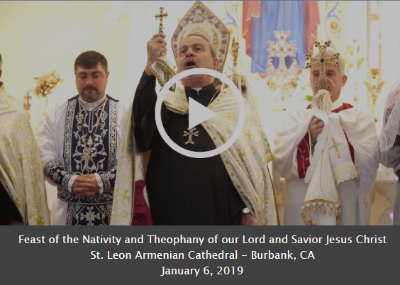 Echoing thousands of years of religious and cultural tradition, a monumental mass of faithful attended the symbolic Feast of the Nativity and Theophany and Blessing of the Holy Water ceremony at St. Leon Armenian Cathedral (Surpotz Ghevontiantz) in Burbank, California, on January 6, 2019, in a spiritually moving and inspiring service led by celebrant and homilist, His Eminence Archbishop Hovnan Derderian, Primate of the Western Diocese of the Armenian Church of North America.