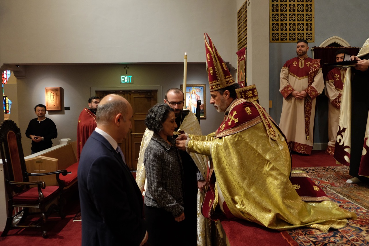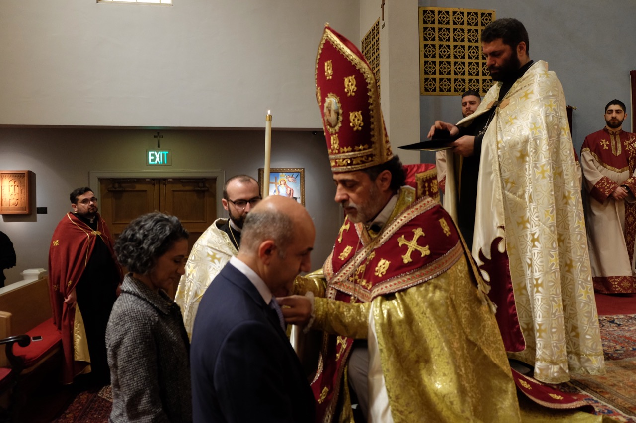 During the service, Archbishop Derderian commended the selfless service of Dr. and Mrs. John and Paula Boghossian rendered to St. John Armenian Church and honored the esteemed couple with a Hye Spirit medal. “You have served at St. John Armenian Church with unrelenting dedication and enduring affection. In doing so, you have praised and glorified Christ, our Lord,” said Archbishop Derderian to the honorees.