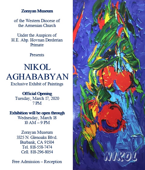 EXCLUSIVE EXHIBIT OF PAINTINGS OF NIKOL AGHABABYAN AT ZORAYAN MUSEUM ON MARCH 17 AND 18 EXCLUSIVE EXHIBIT OF PAINTINGS OF NIKOL AGHABABYAN AT ZORAYAN MUSEUM ON MARCH 17 AND 18- Western Diocese of the Armenian Church